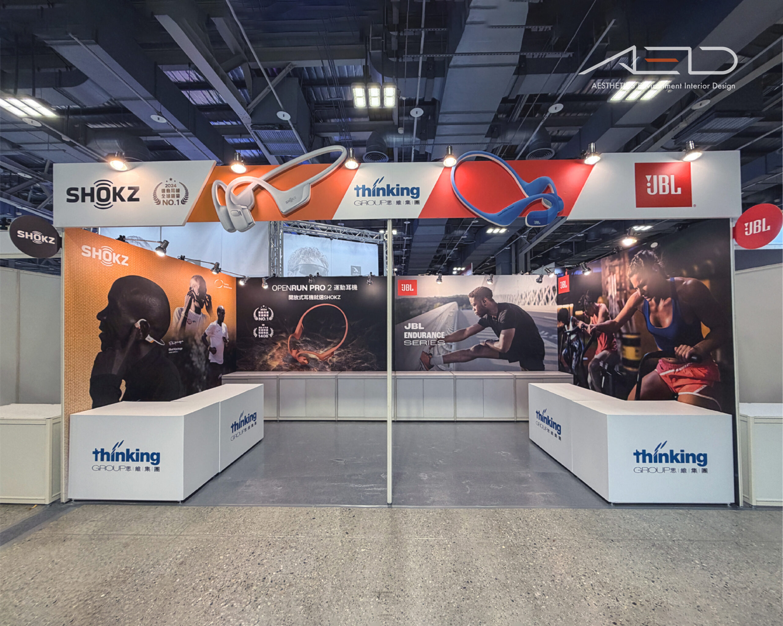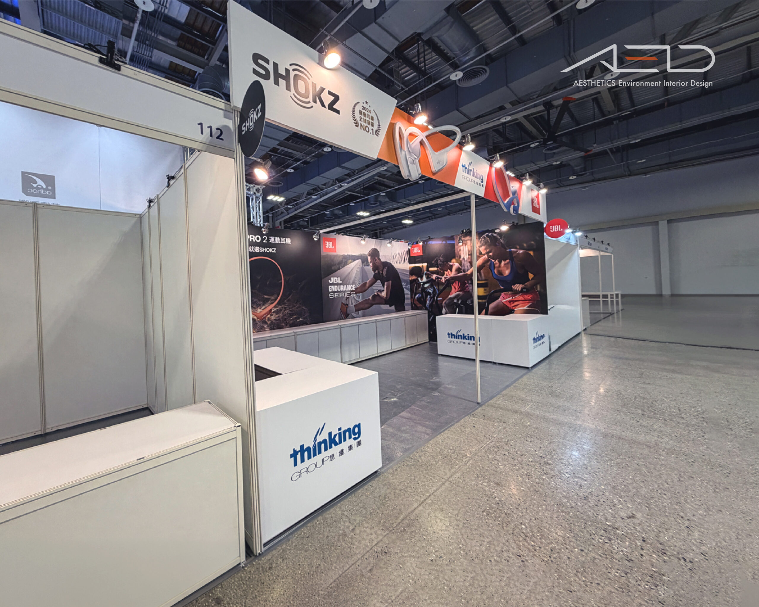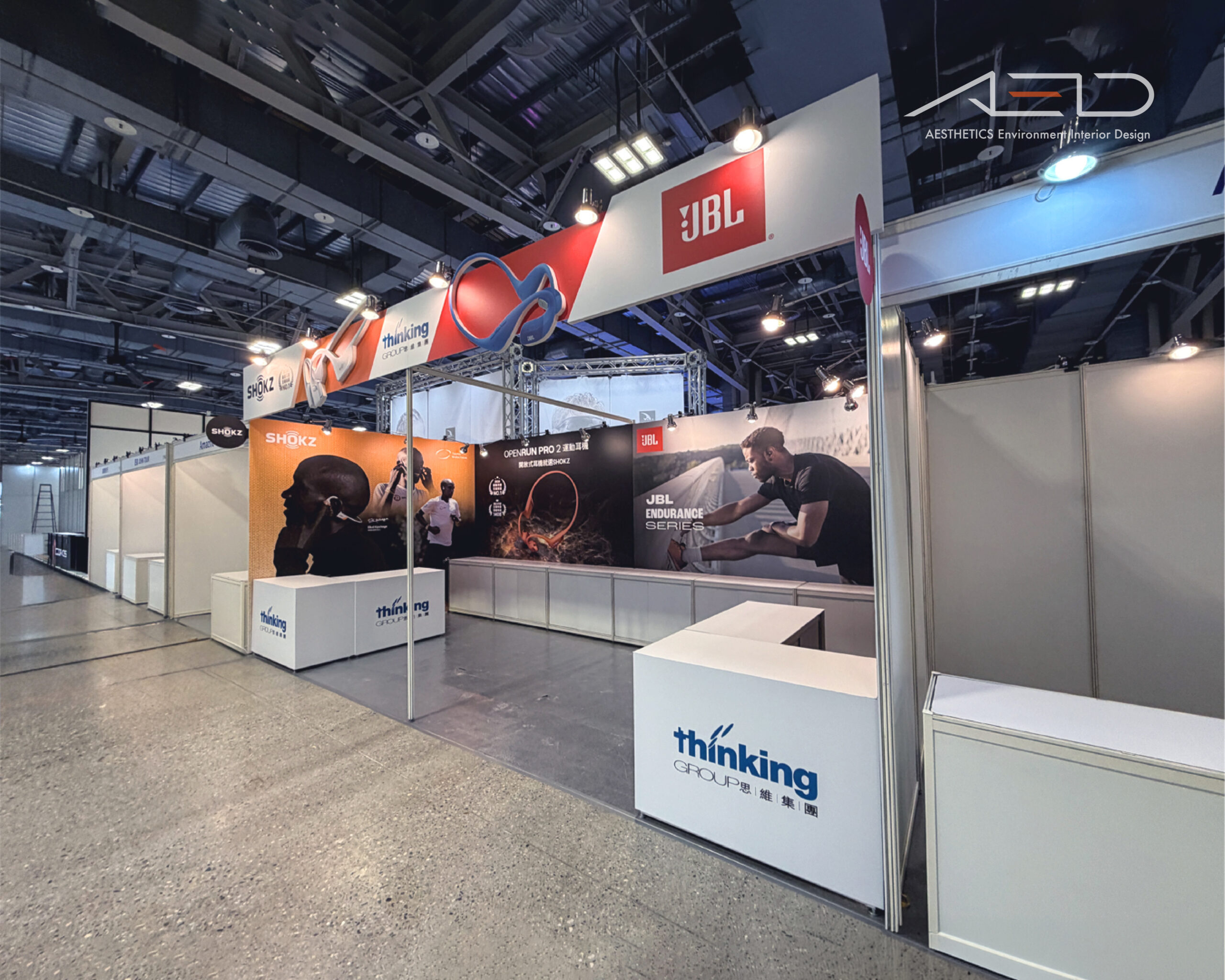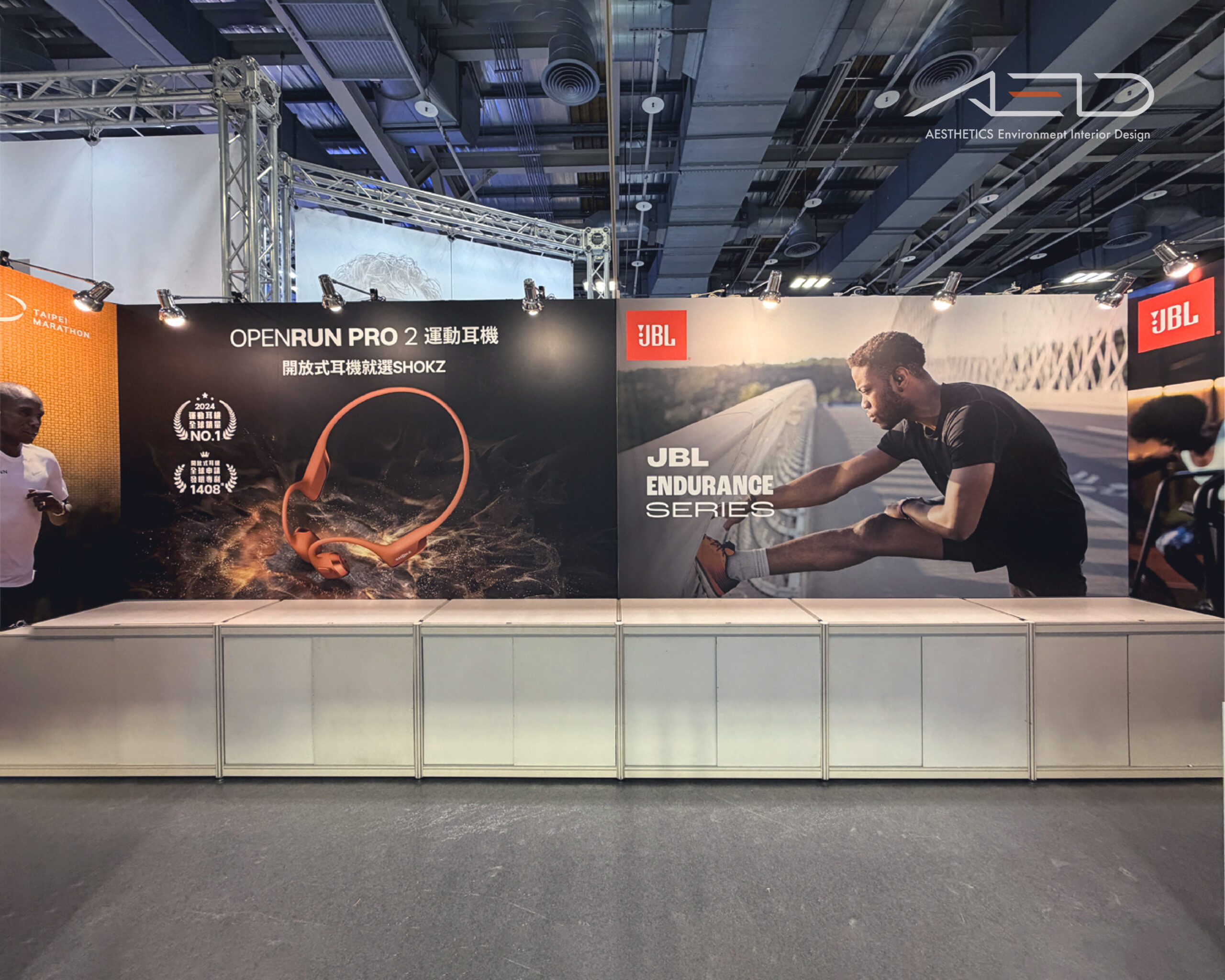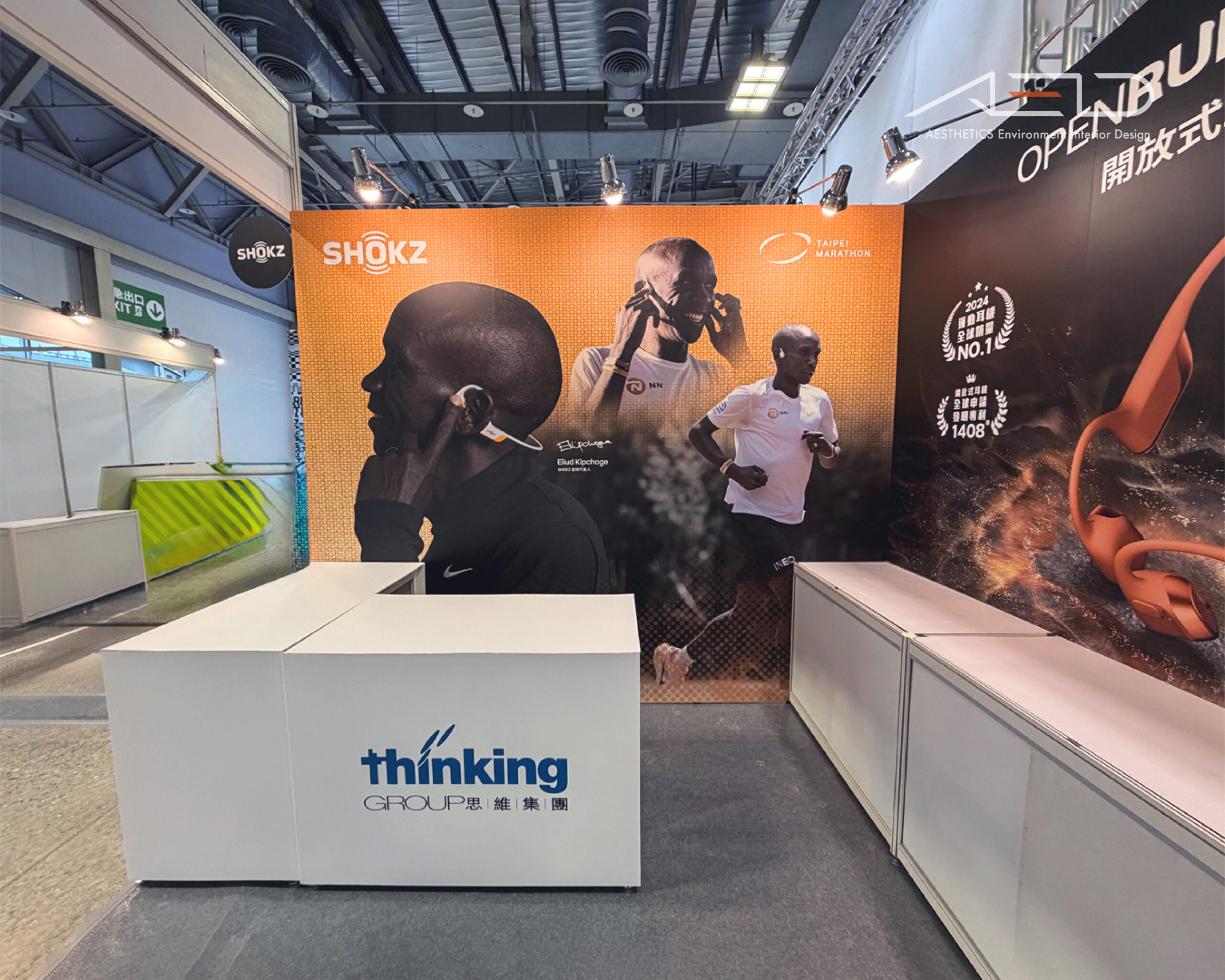 A brand exhibition booth was created for Thinking Group at the 2025 Taipei Marathon Expo, bringing together sports audio brands SHOKZ and JBL within a clear and open display environment.