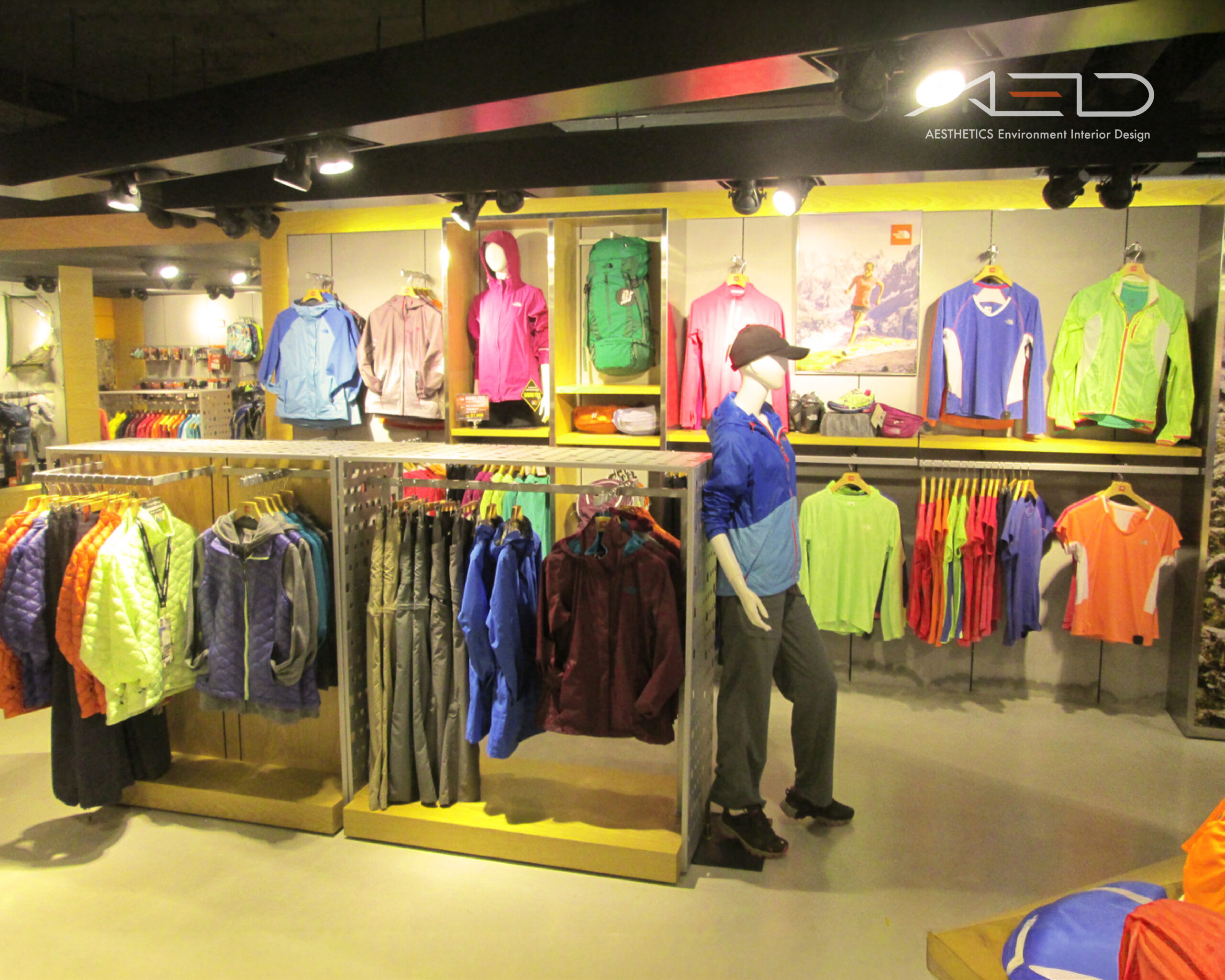 Inside, a rational display system and vibrant color merchandising are combined with fluid circulation and layered product presentation, creating a retail environment that reflects both performance functionality and the spirit of exploration.