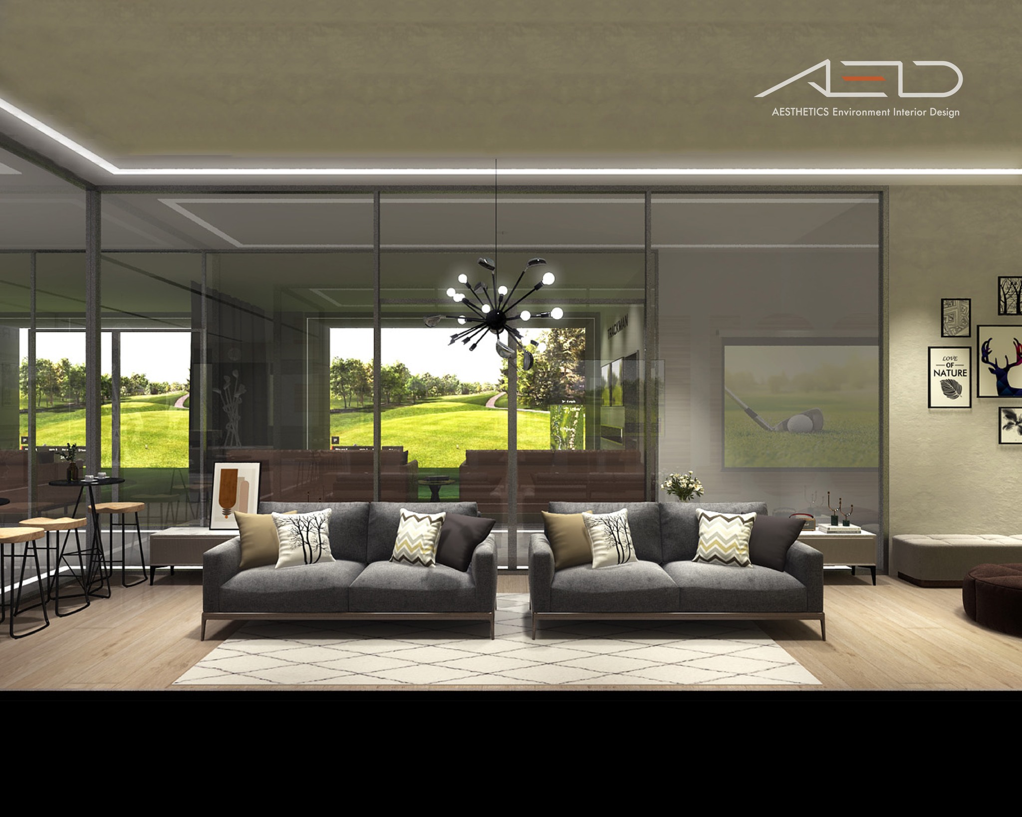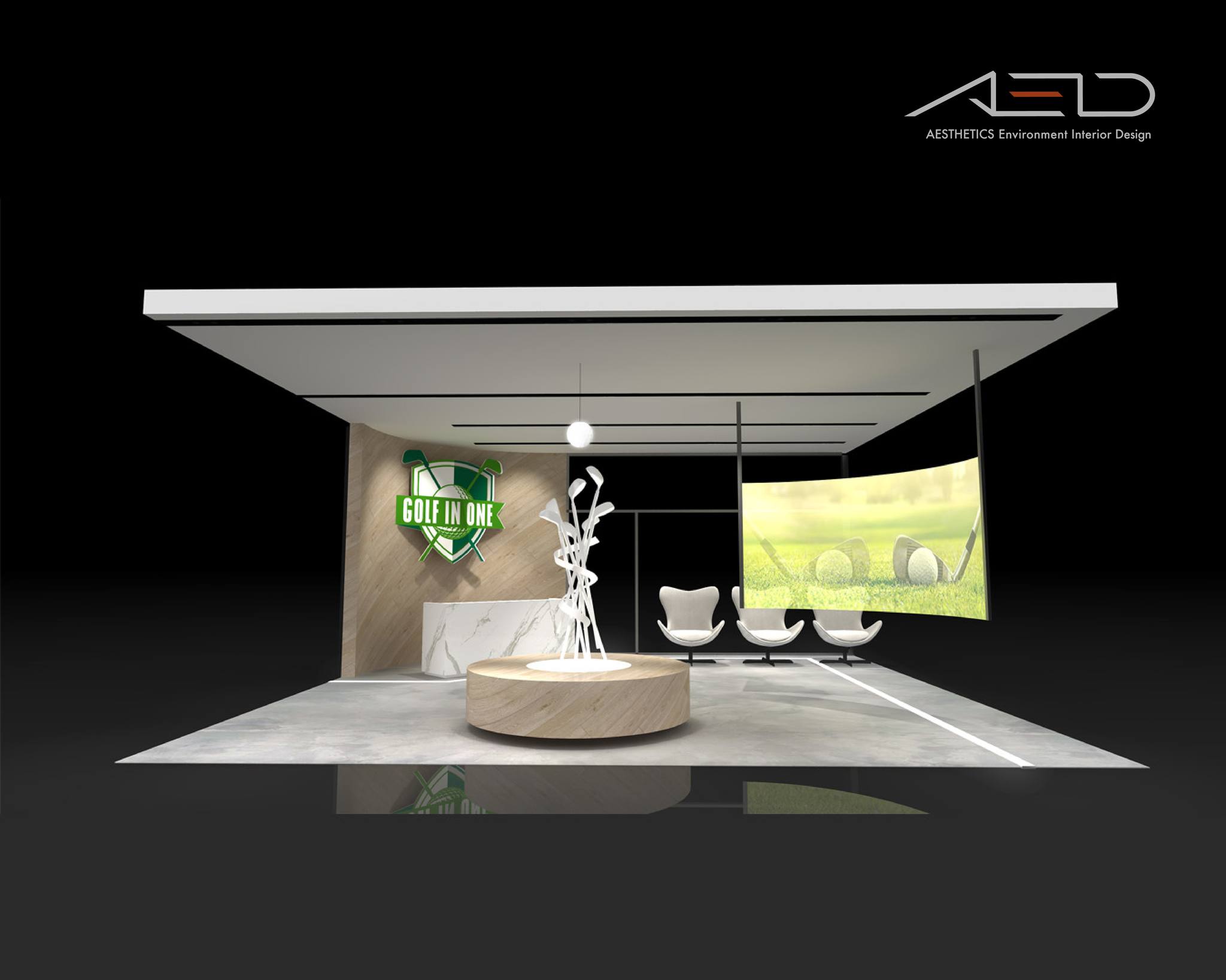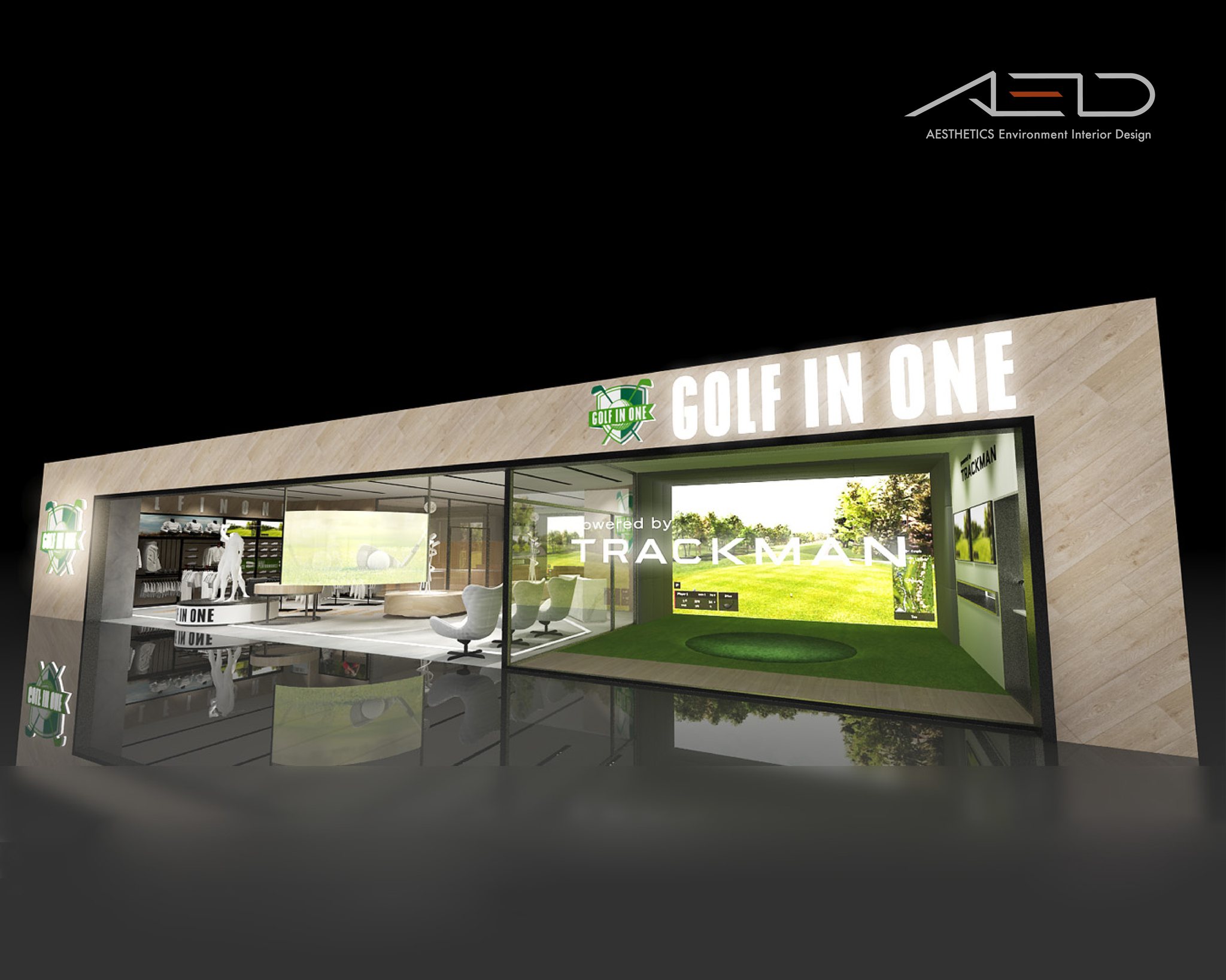 以高爾夫運動場景為空間概念,整體場域透過開放式立面與大面玻璃界面建立清晰的品牌展示窗口,使室內體驗自然延伸至公共空間之中,形成具有吸引力的品牌入口。