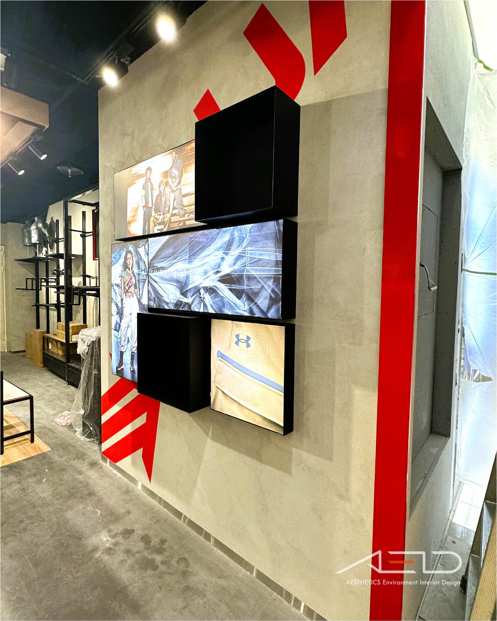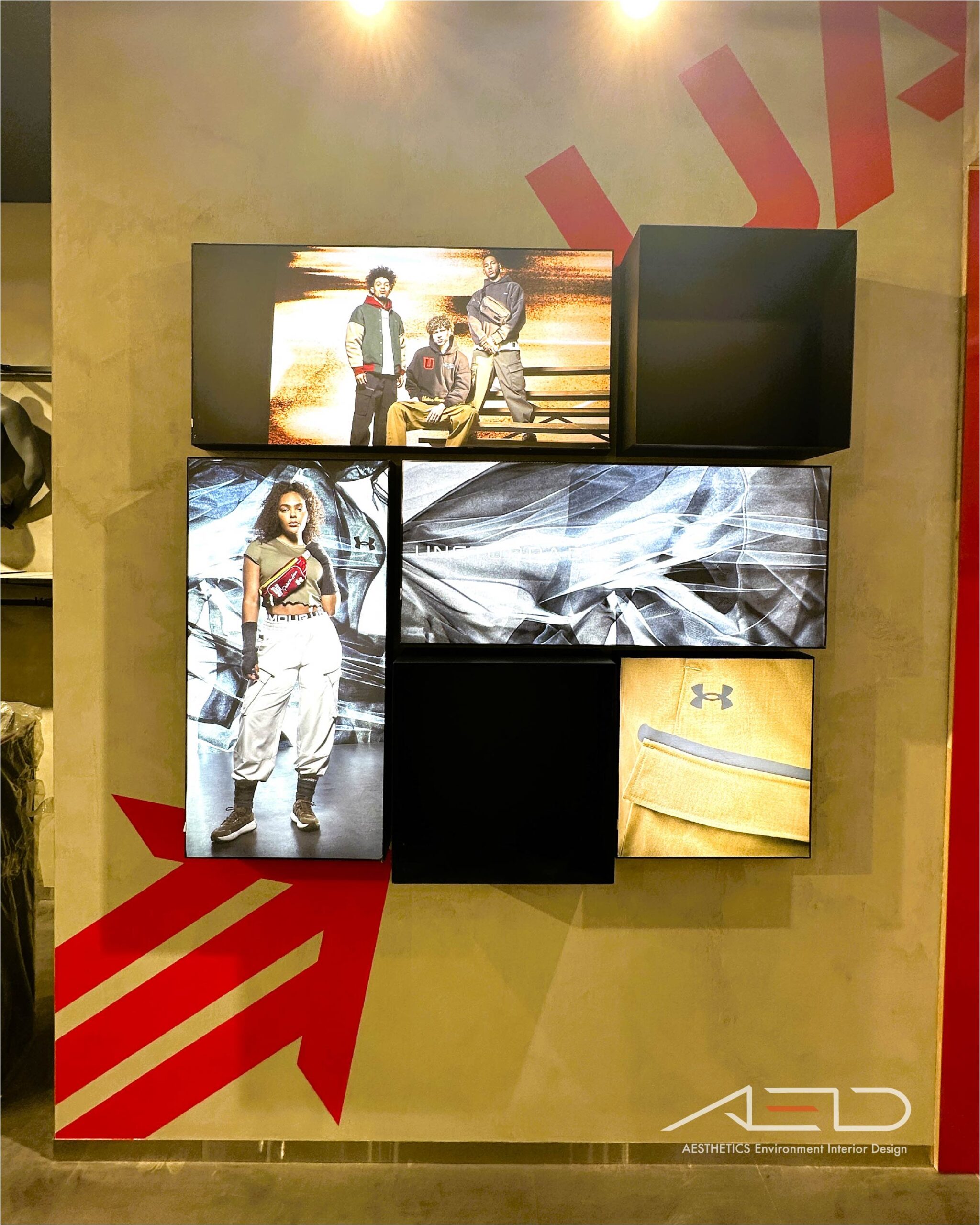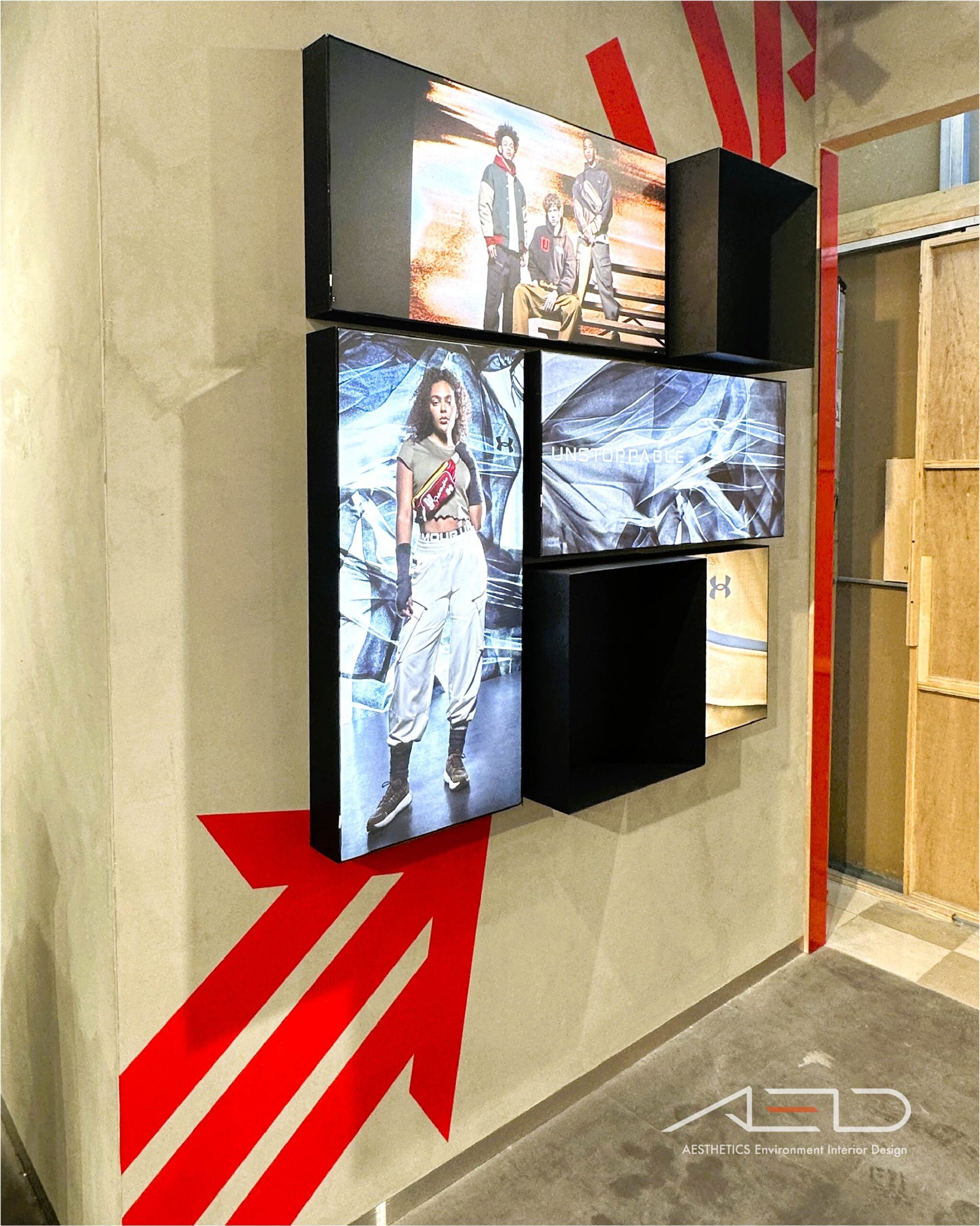 品牌形象燈箱系統建立清晰的視覺展示界面,強化 UNDER ARMOUR 在店內動線中的品牌識別與形象傳達。