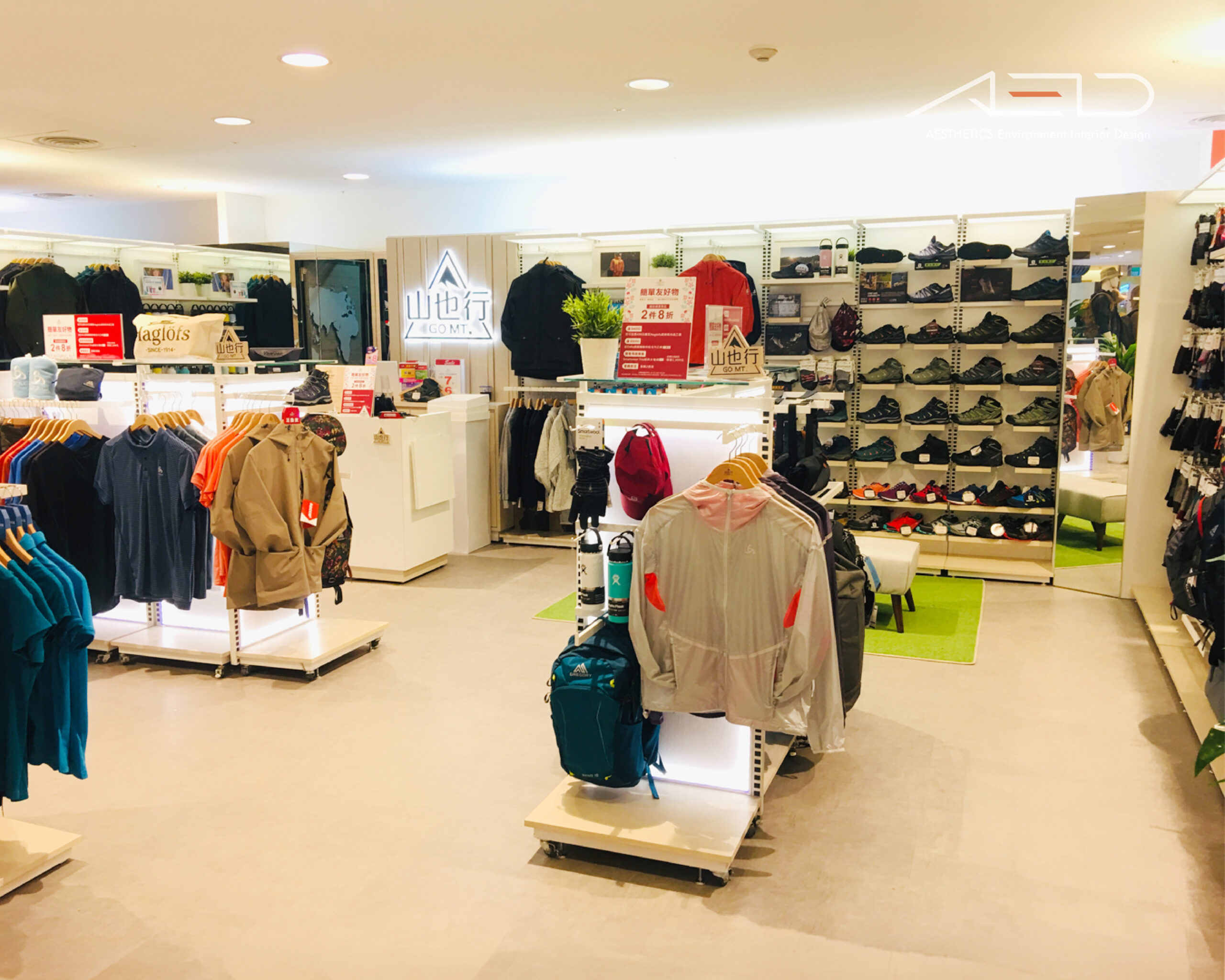 木質元素與自然意象的設計語彙,營造出兼具機能與生活感的戶外零售空間,展現 GO MT 對自然探索與日常戶外文化的品牌精神。