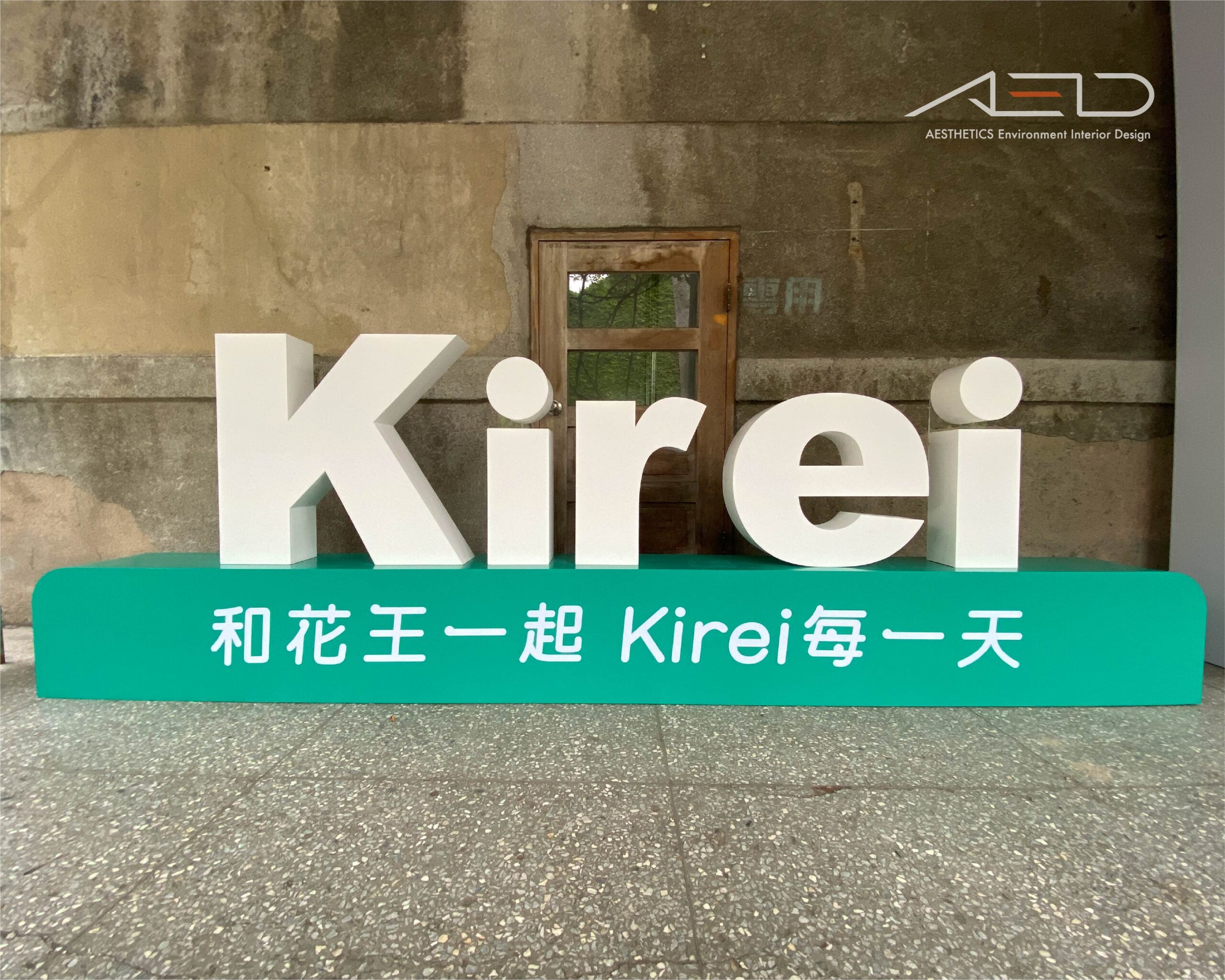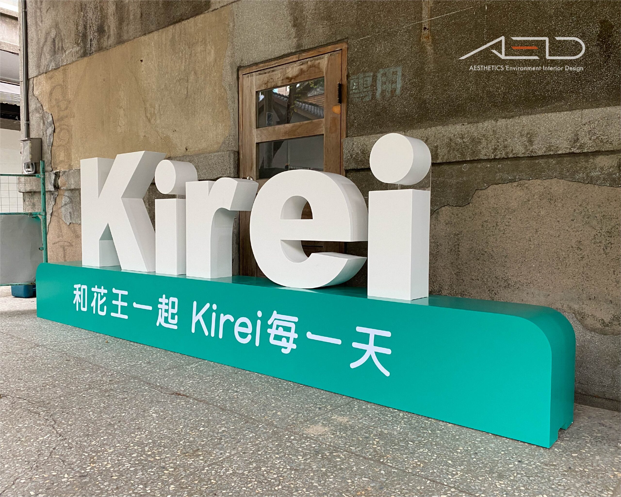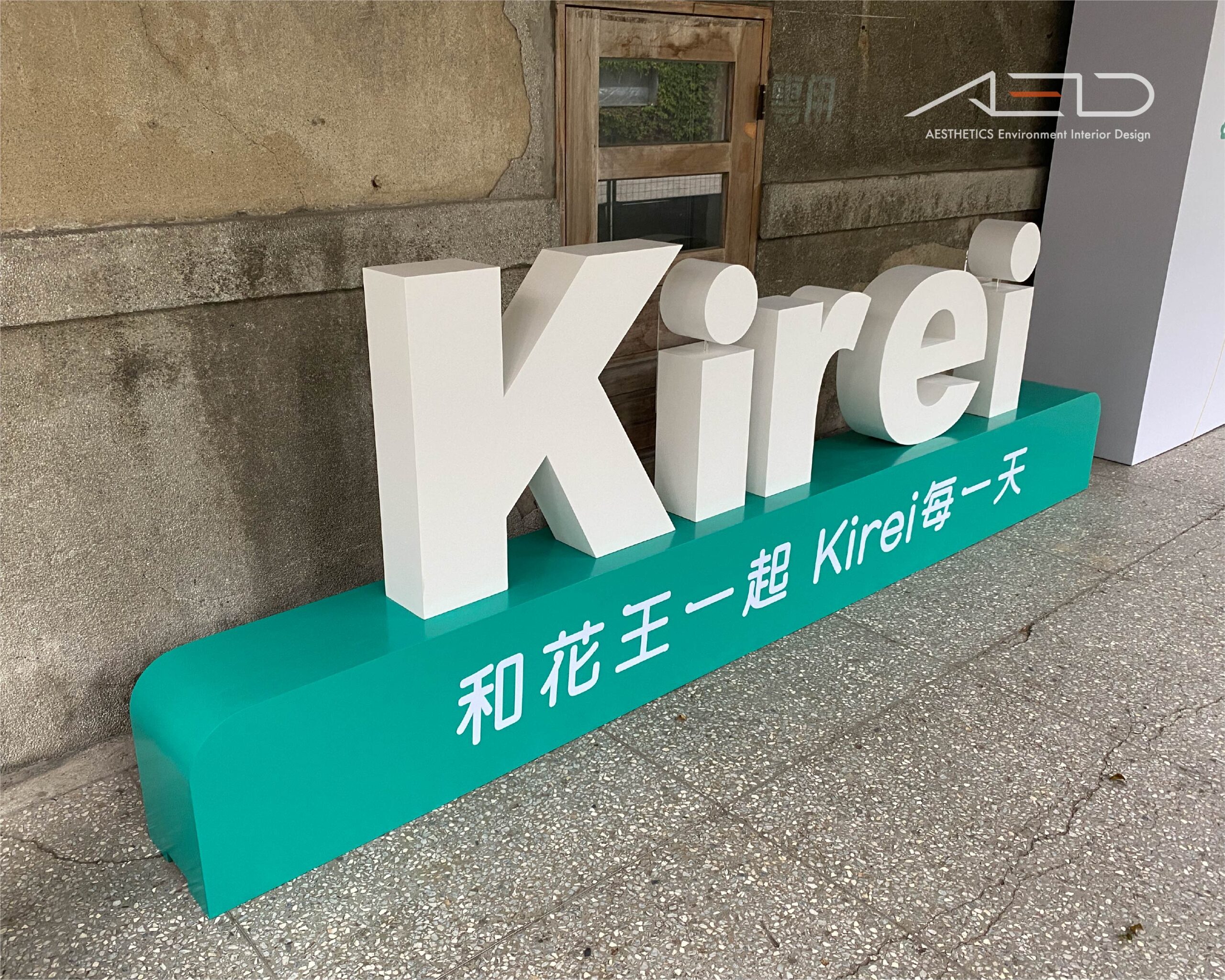 為花王 60 週年「Kirei 美好永續」特展打造大型品牌形象立體字裝置,作為展覽入口的品牌視覺焦點。