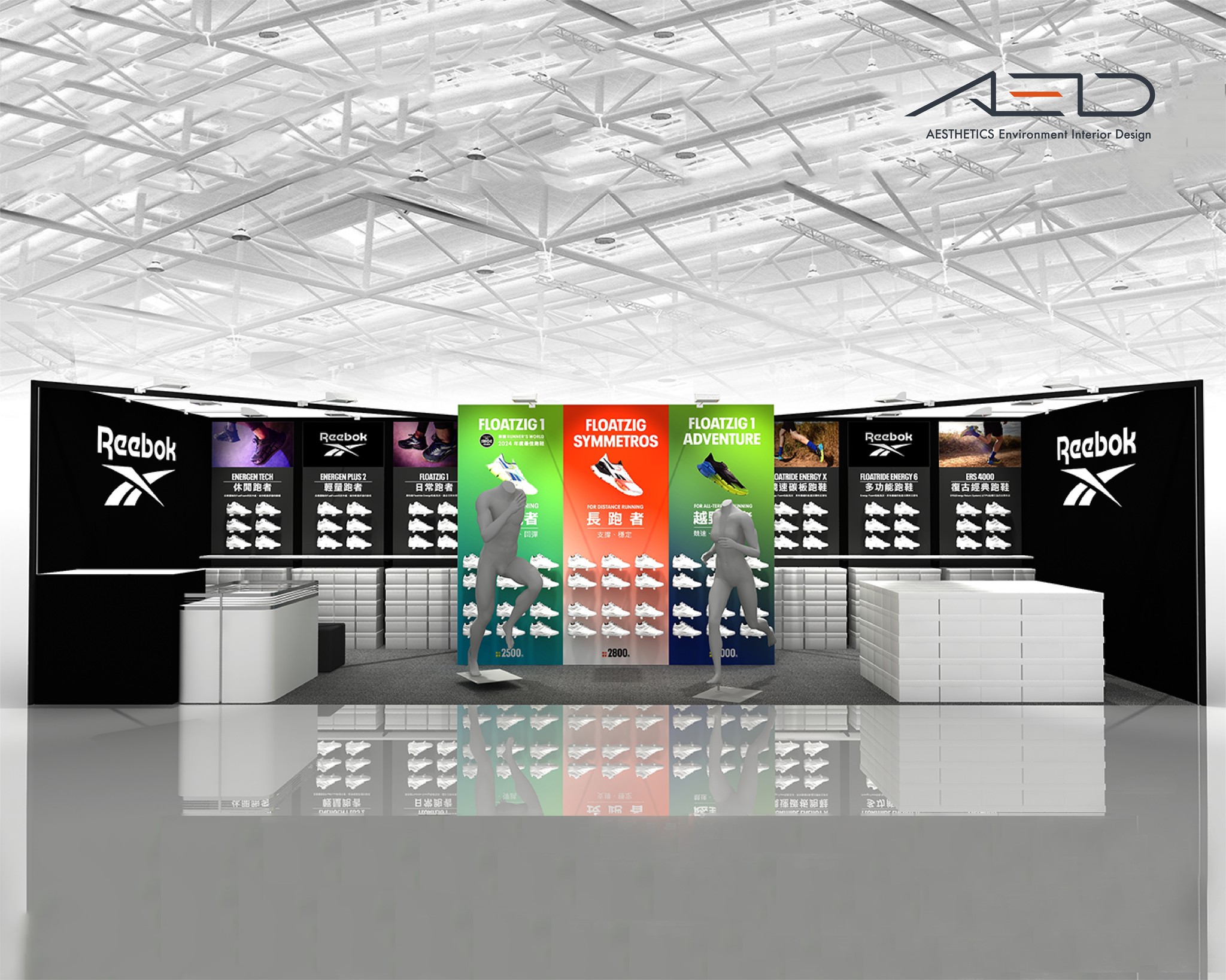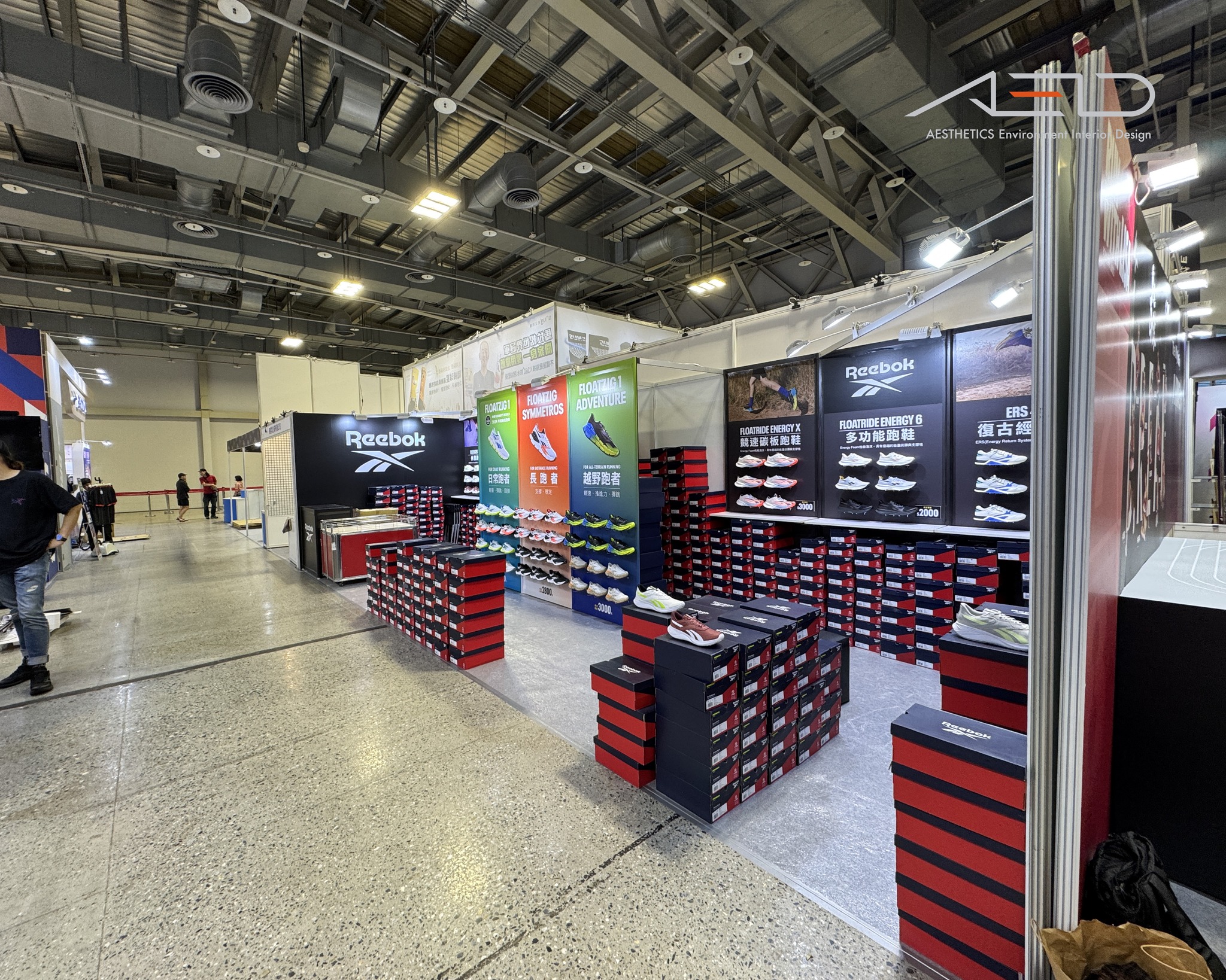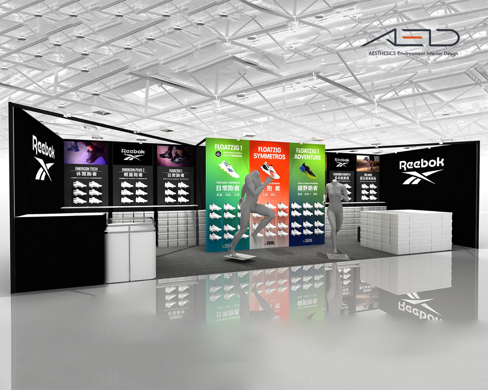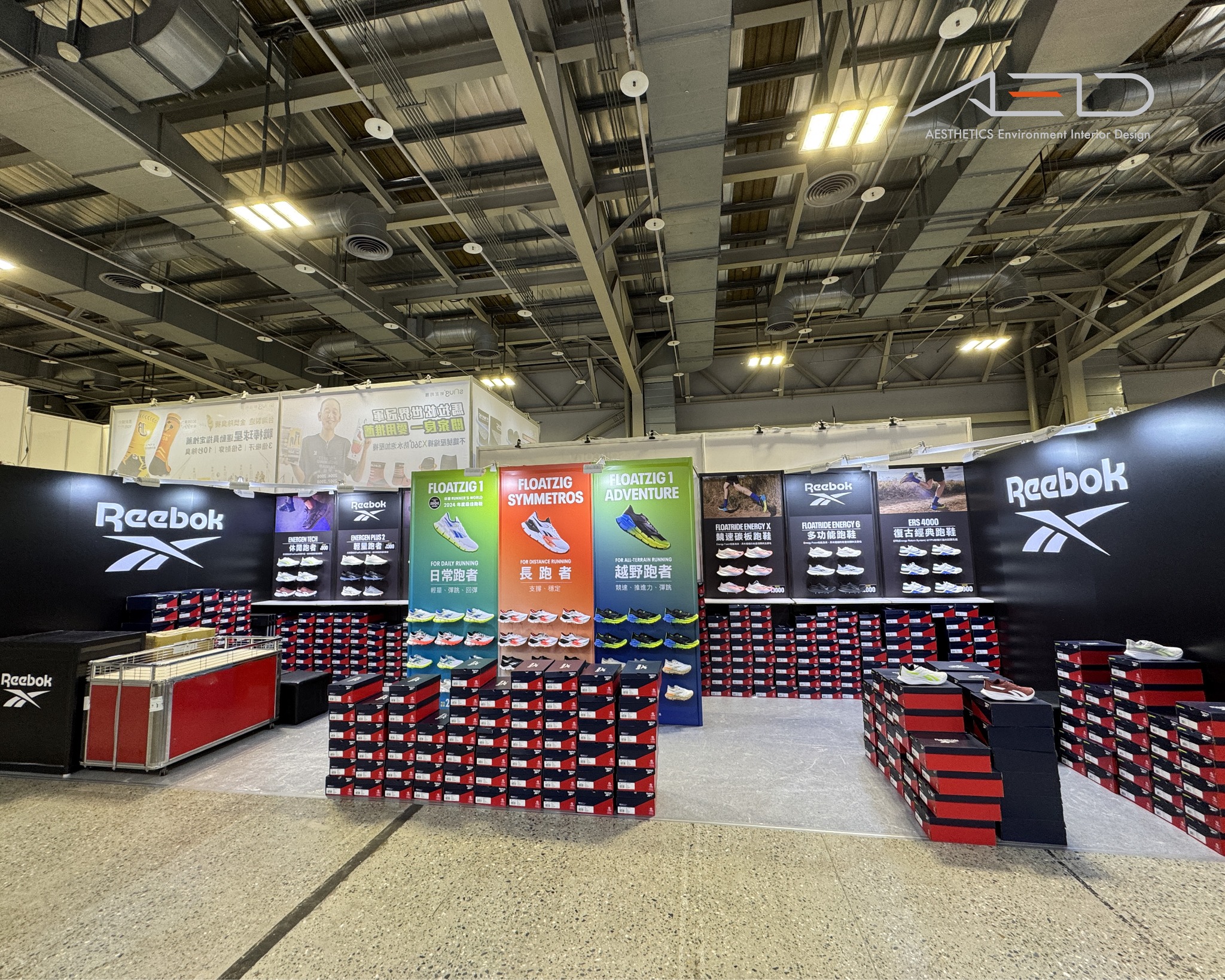 A branded exhibition booth was created for REEBOK at the 2024 Taipei Marathon Expo, presenting the brand’s running collections through a clear and structured product display environment.