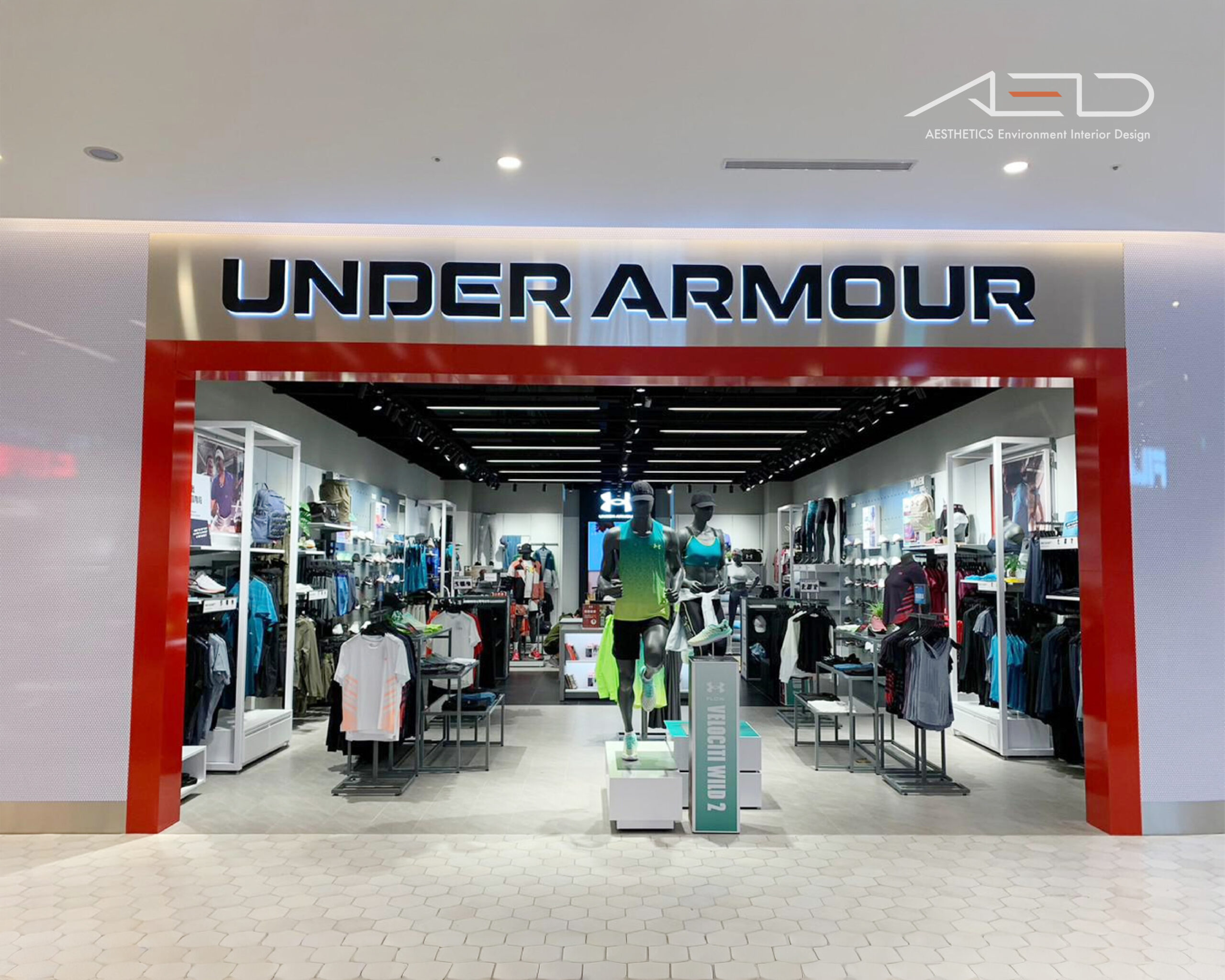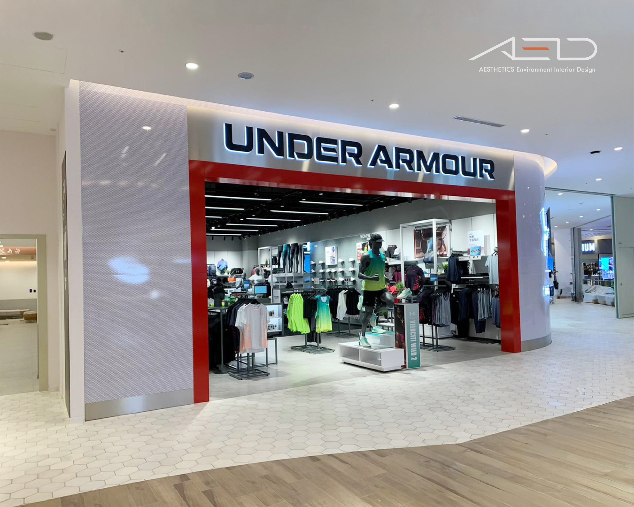 UNDER ARMOUR 鮮明的品牌立面識別,清晰的品牌入口在百貨動線中建立強烈而純粹的品牌界面。