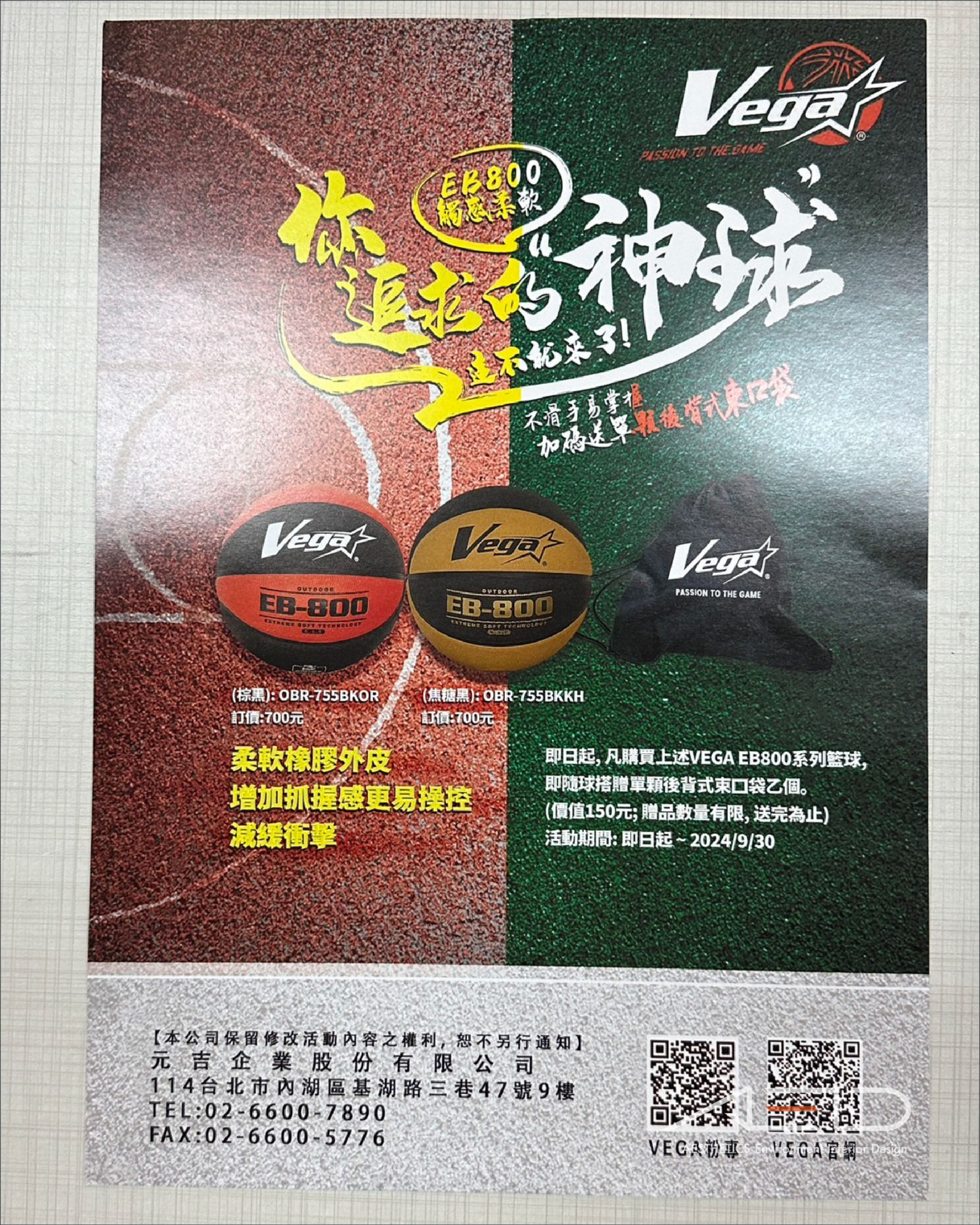 為運動品牌 VEGA 設計系列活動宣傳與零售POP視覺,結合產品形象與運動場景元素,強化品牌在籃球市場中的專業定位。