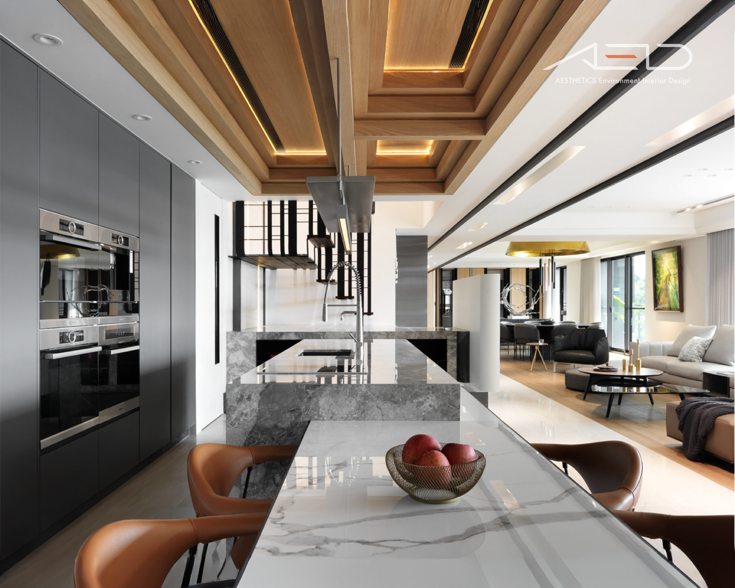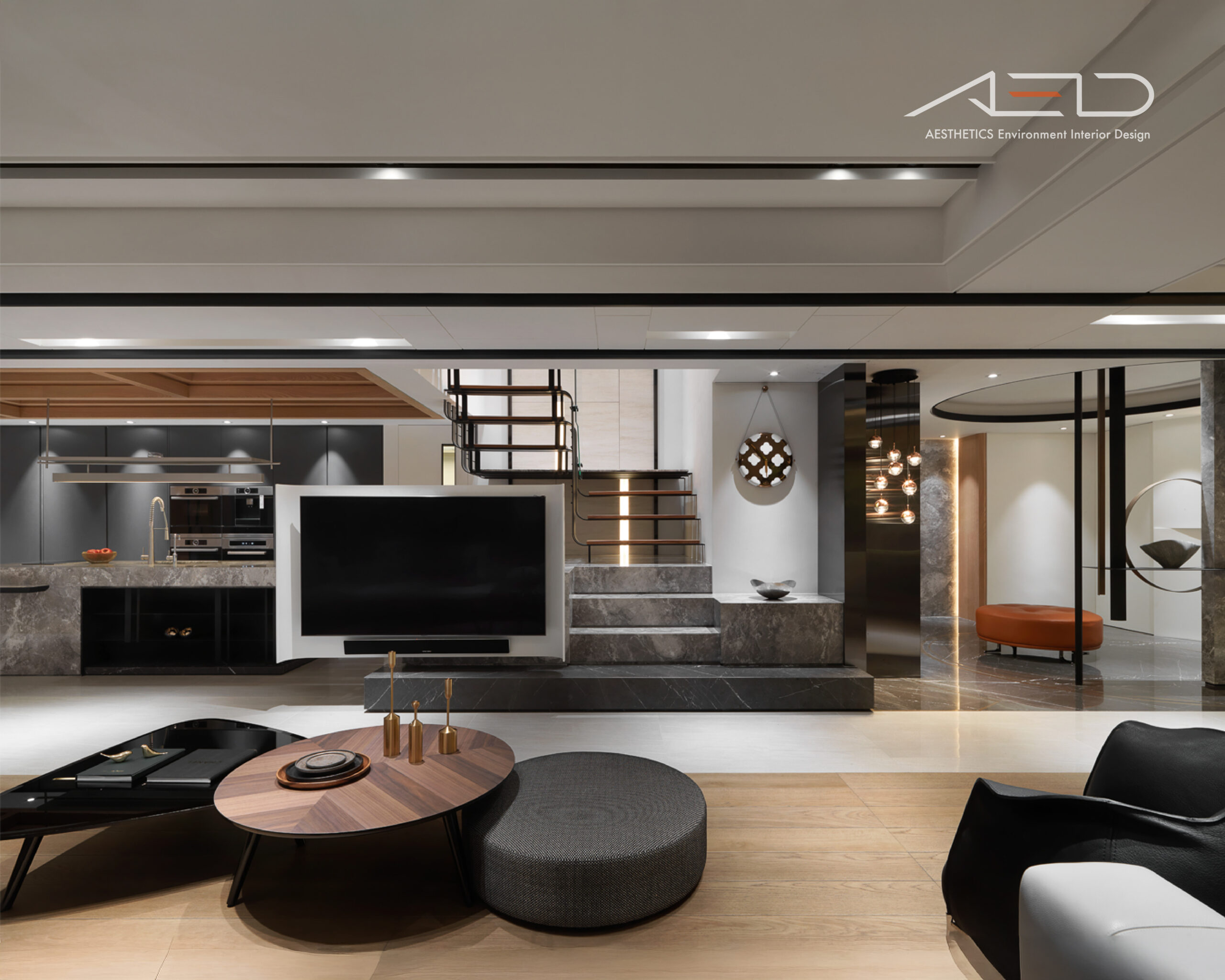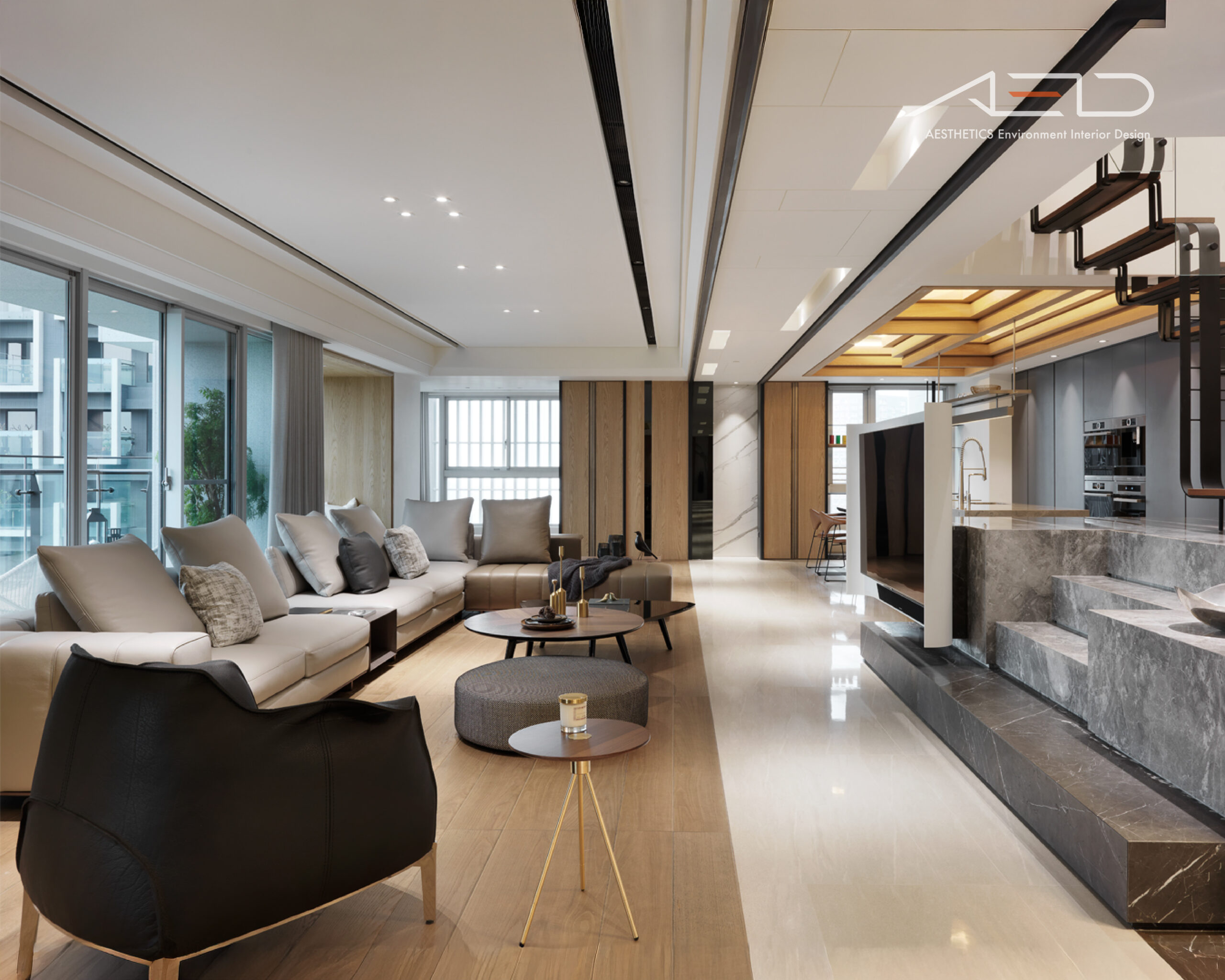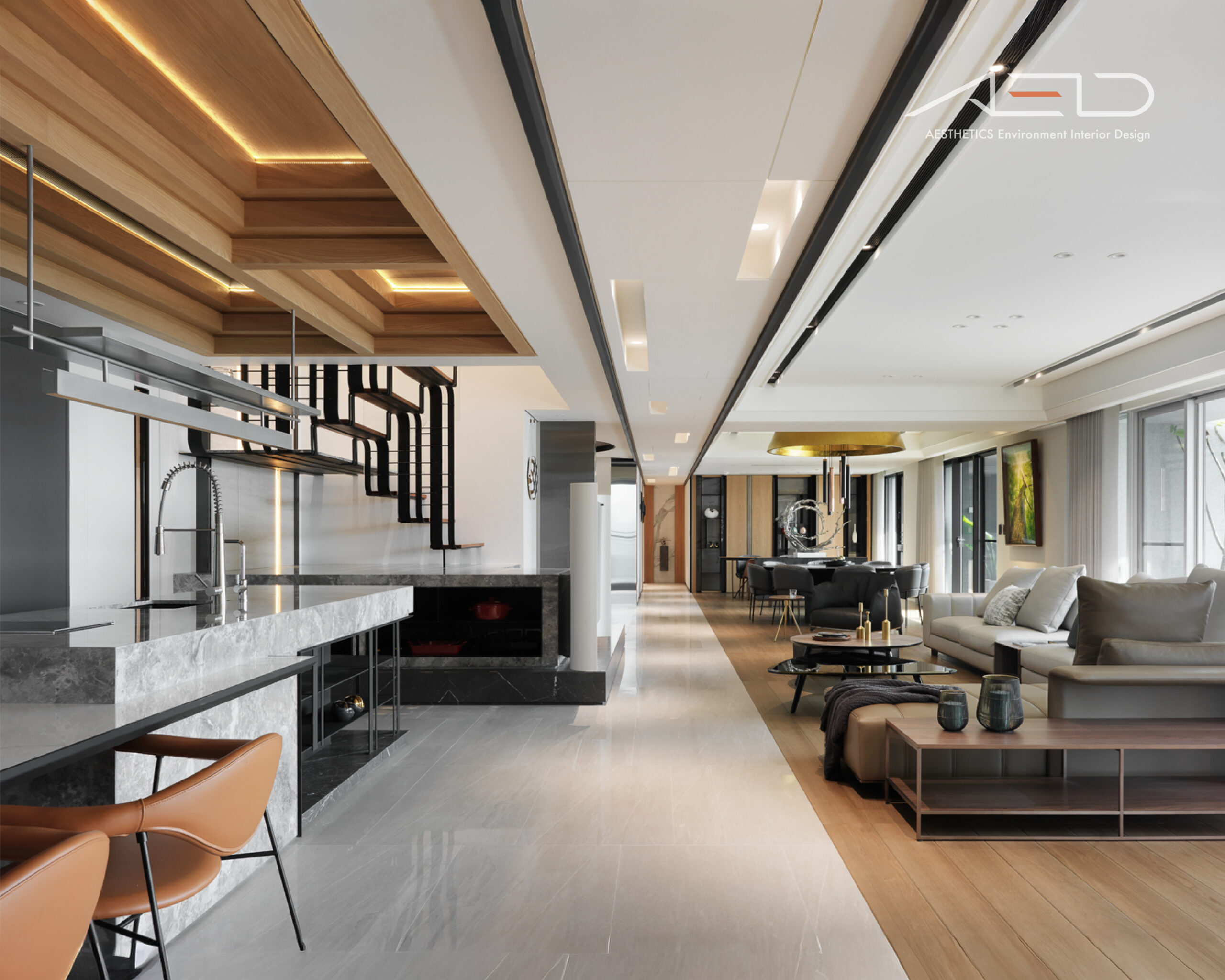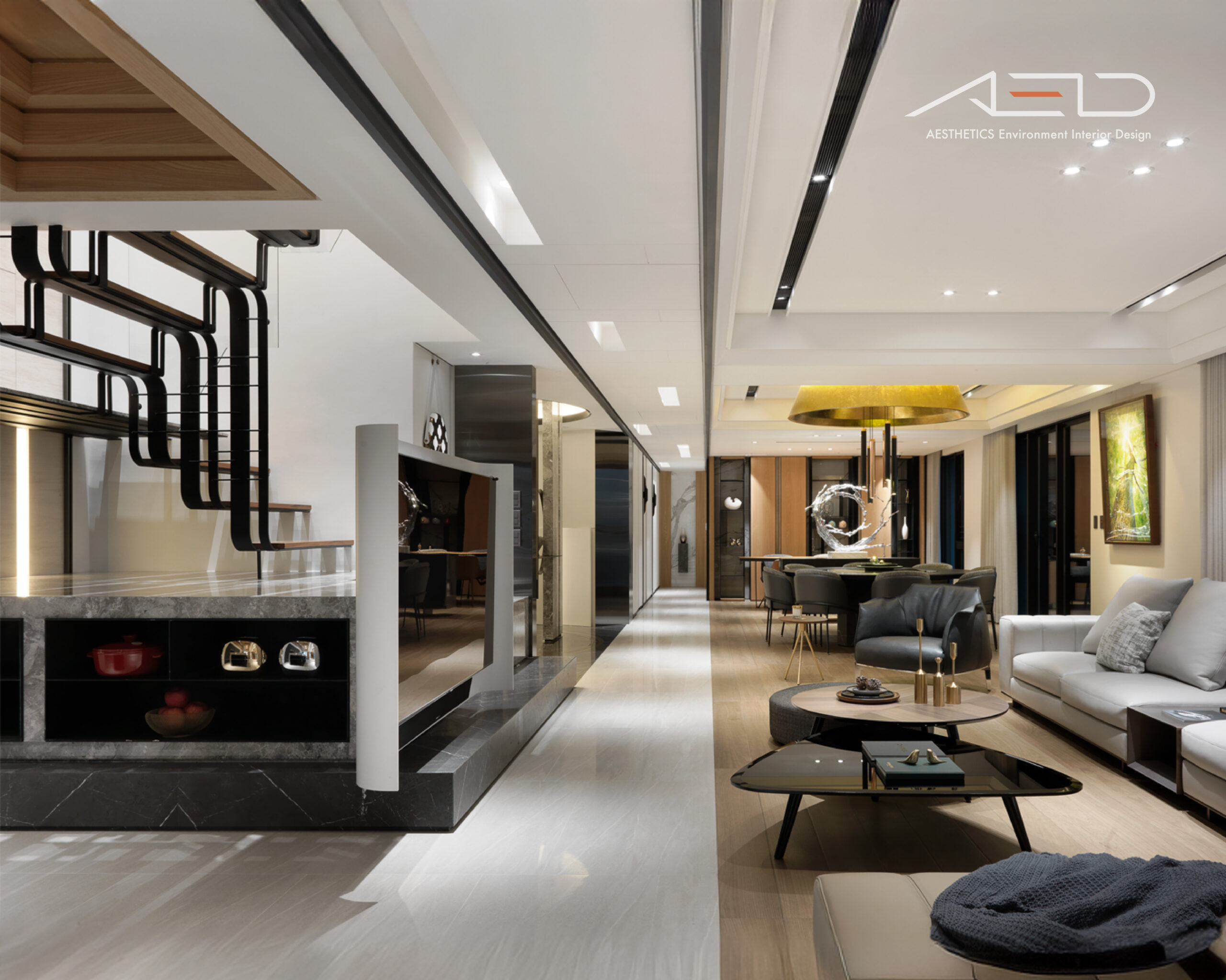 基於每個人對家的不同想像,大宅設計別具獨特性,設計團隊以人文休閒河岸為基調,藉由線性分割,搭配現代感家飾,打造休閒質感的品味居家空間。