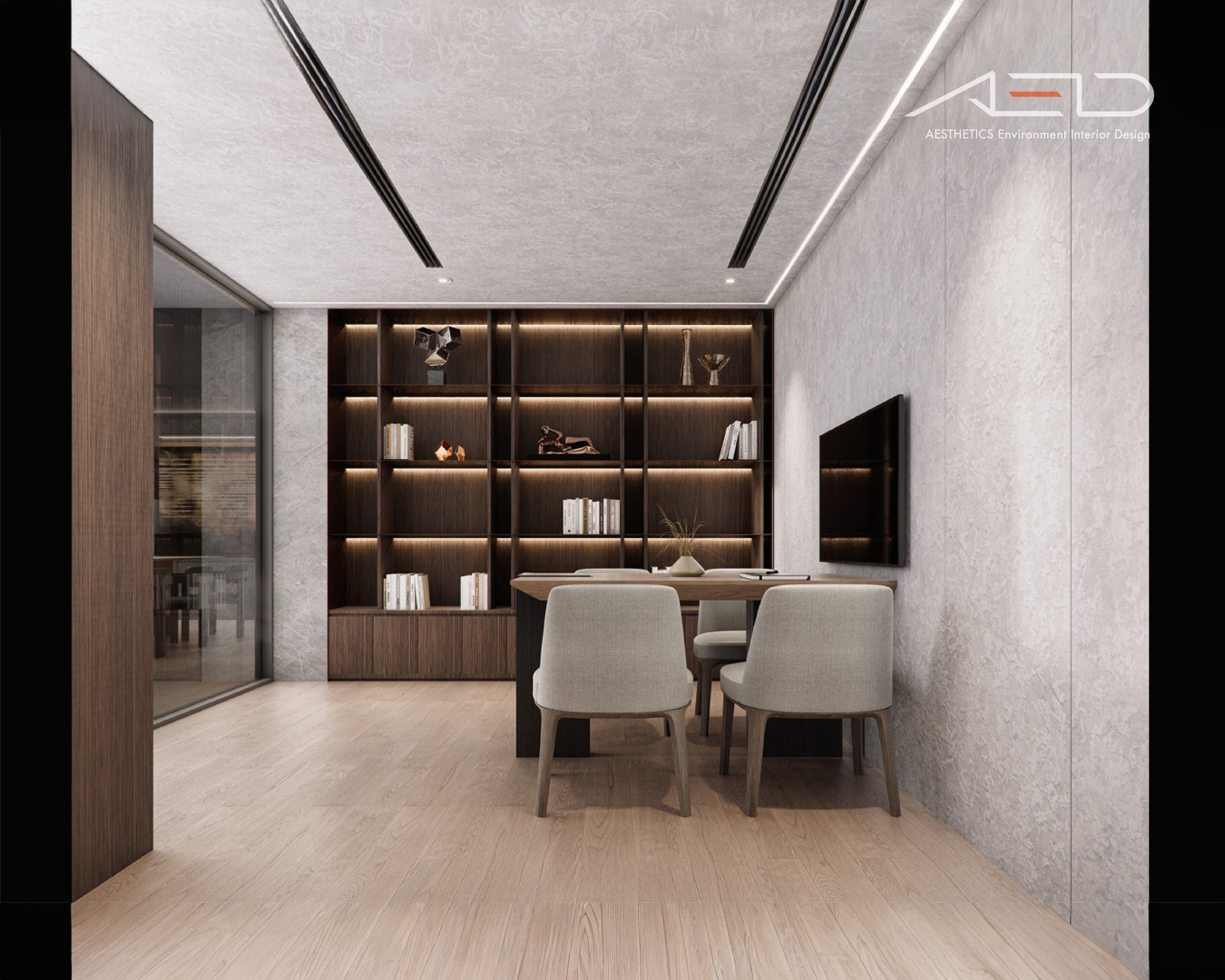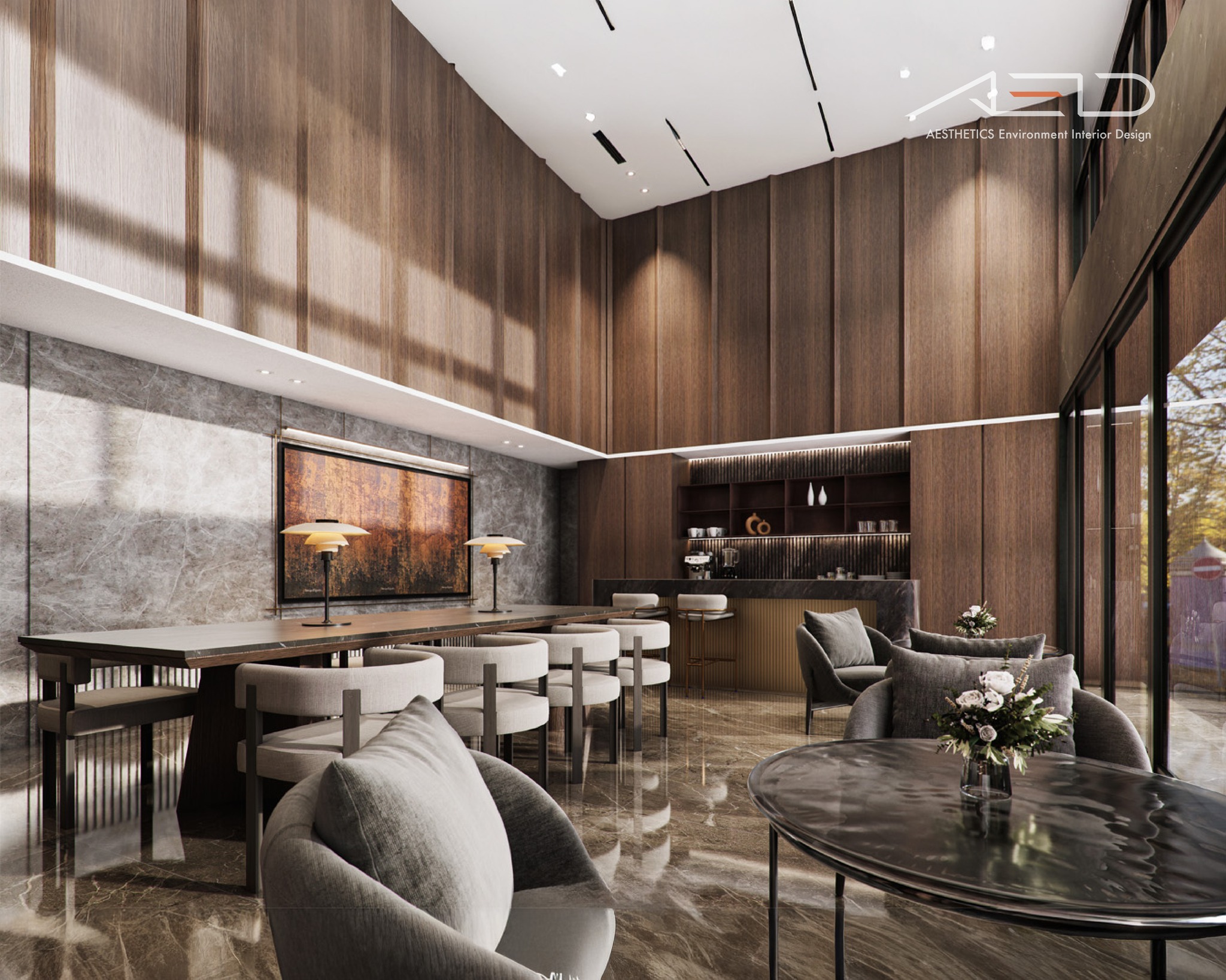 The rugged texture of oxidized metal,the warmth of wood veneer,and the grounded solidity of stone intertwine,offering a sense of stability amid the city’s constant change.