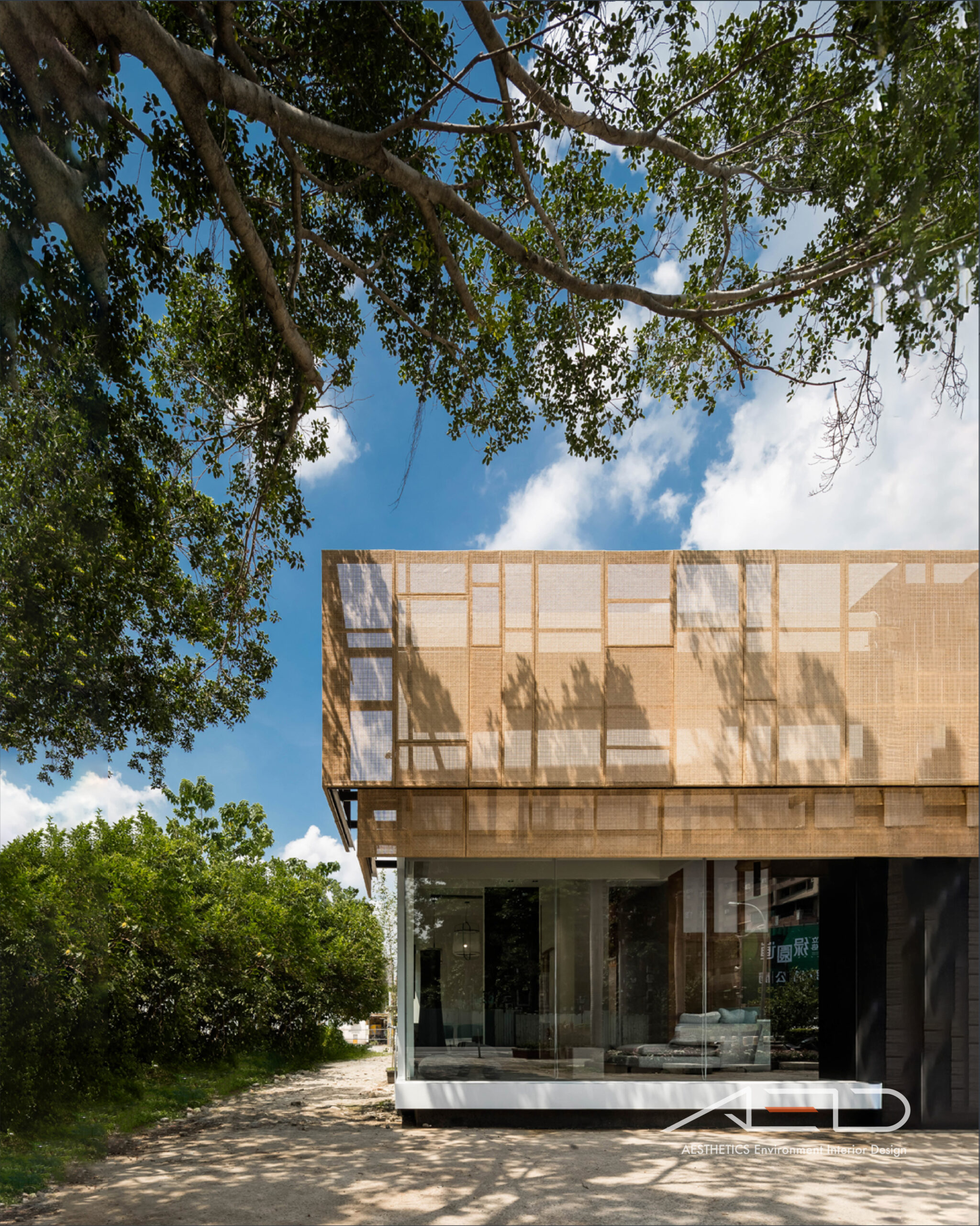 三峽,人文薈萃之地,祖師廟/老街/拱橋/工藝/老樹為當地人所熟悉,在實地履勘後,我們以/當地人文/裝潢素材/藤編工藝/新東方 元素發想,建構融合當地文化元素並結合建案周邊錄帶的接待中心,整體來說接待中心外觀對在地人及賞屋者來說是親切、親近的,跳脫過往接待中心給人難以靠近的感覺,進而創造出銷售佳績。
