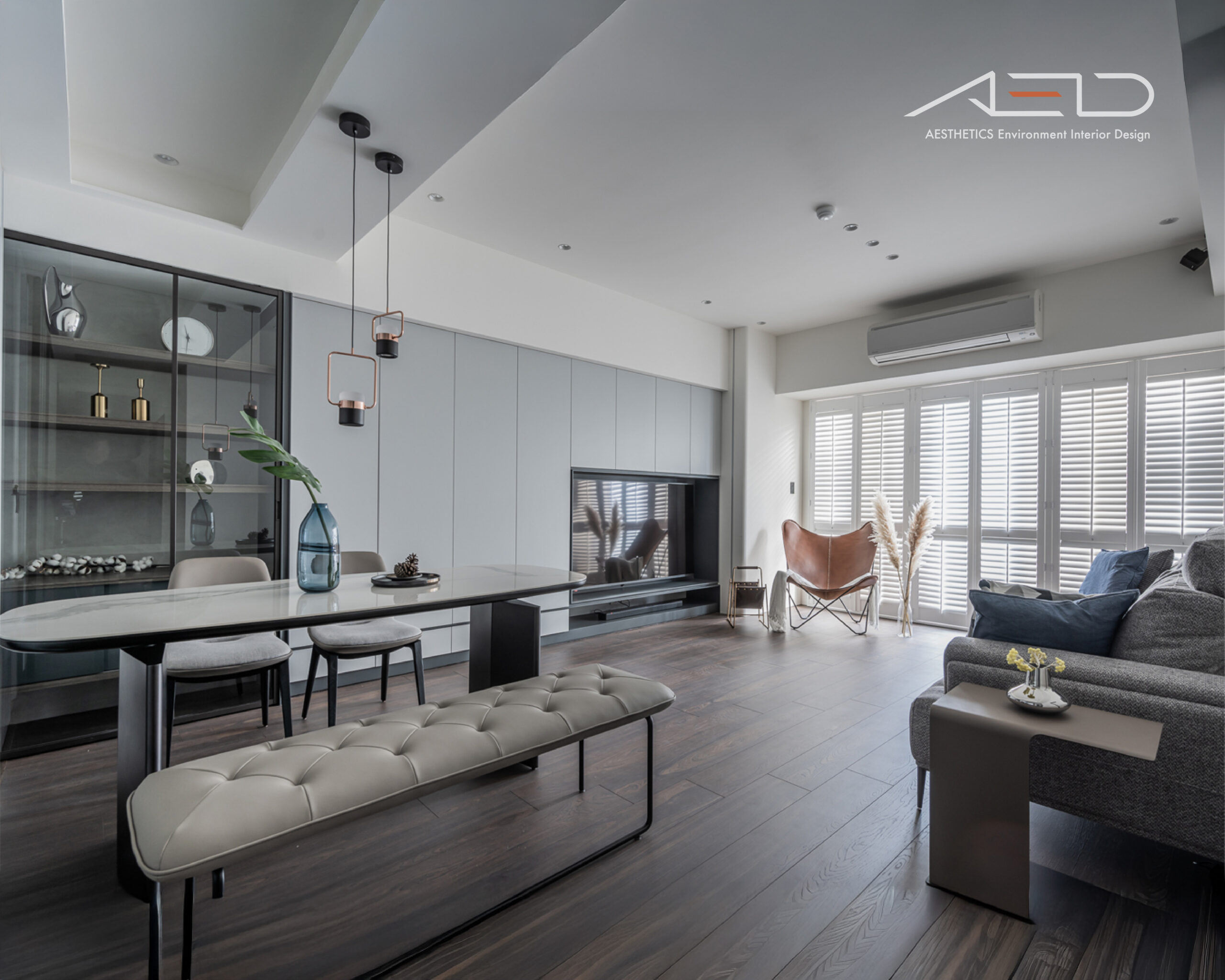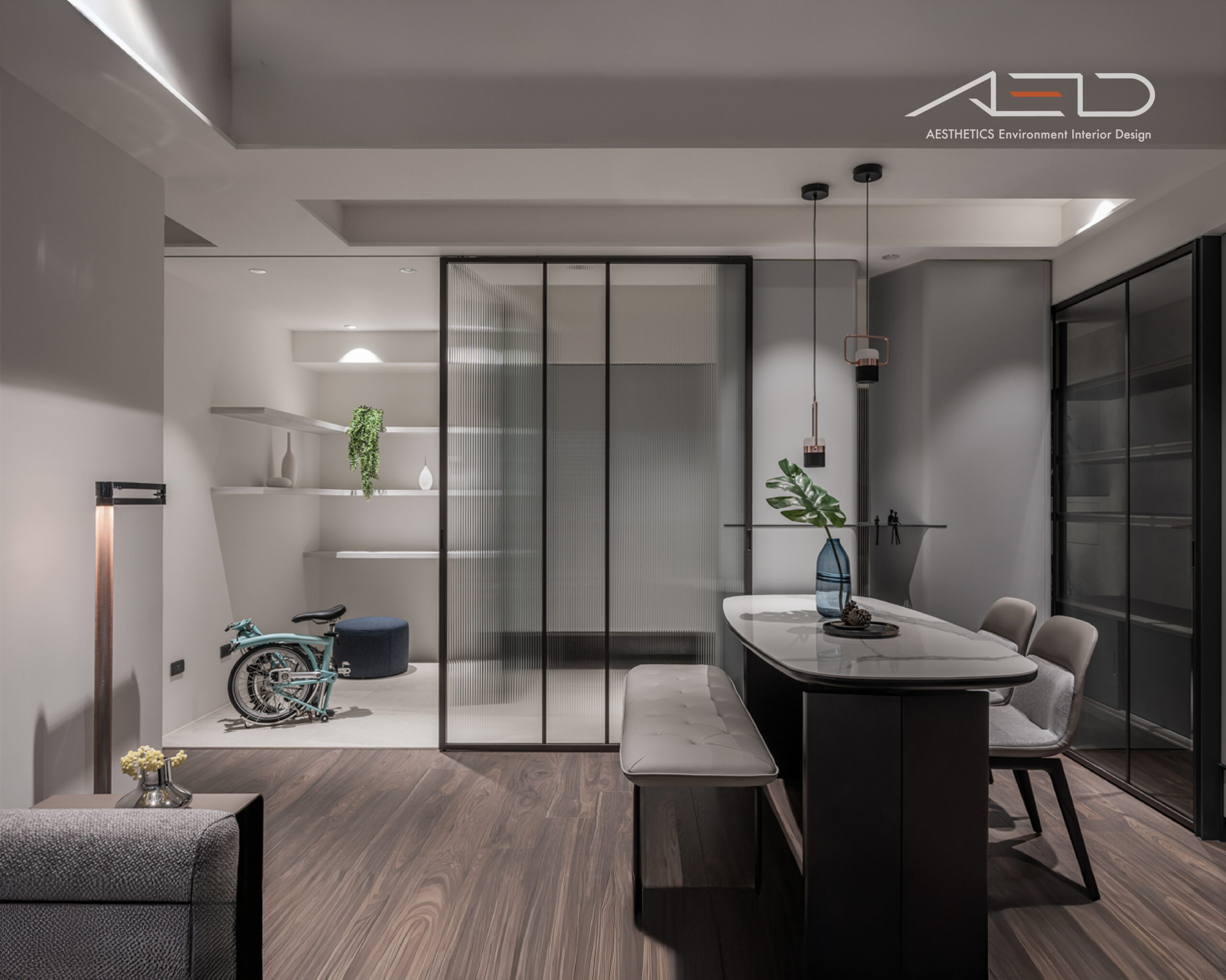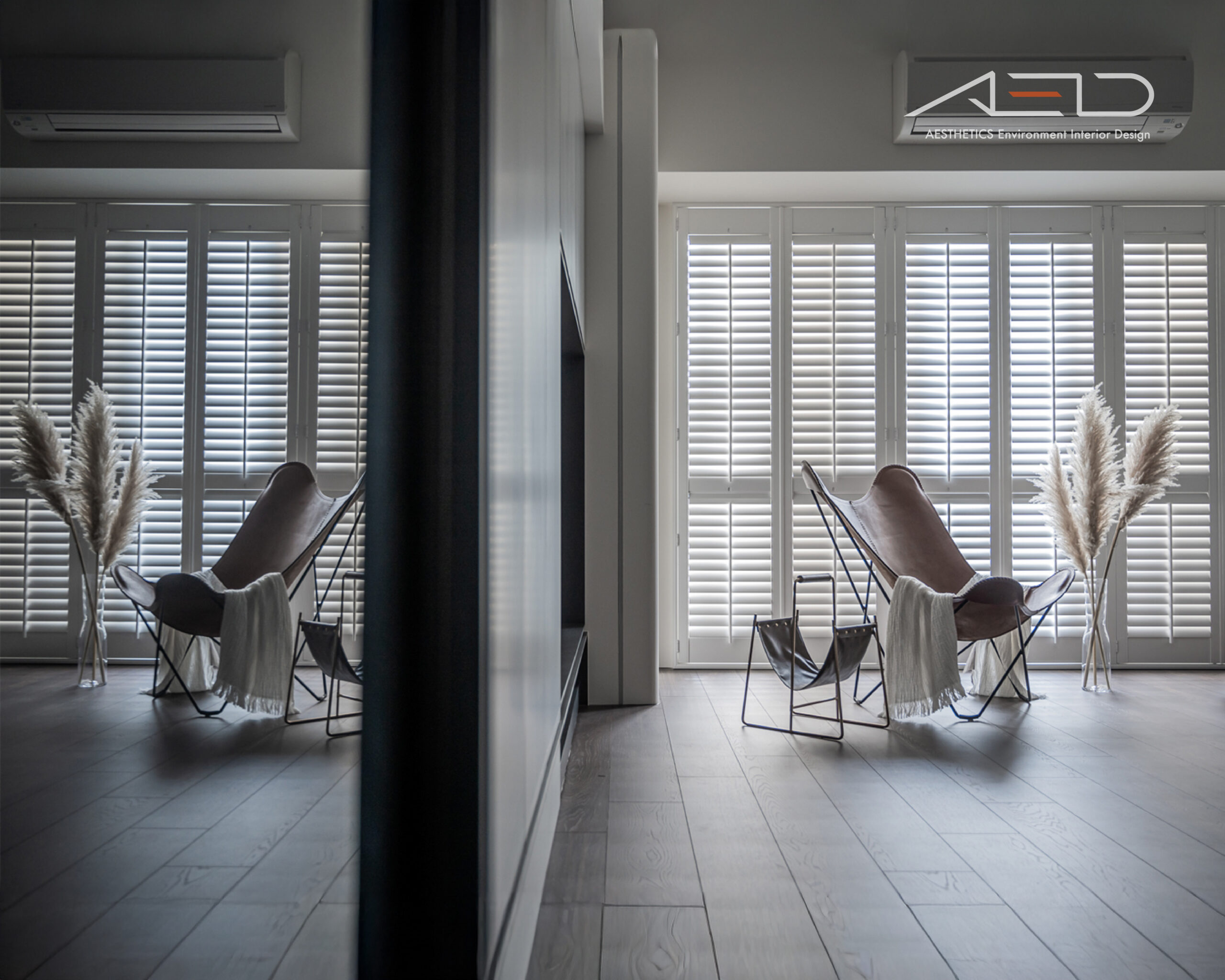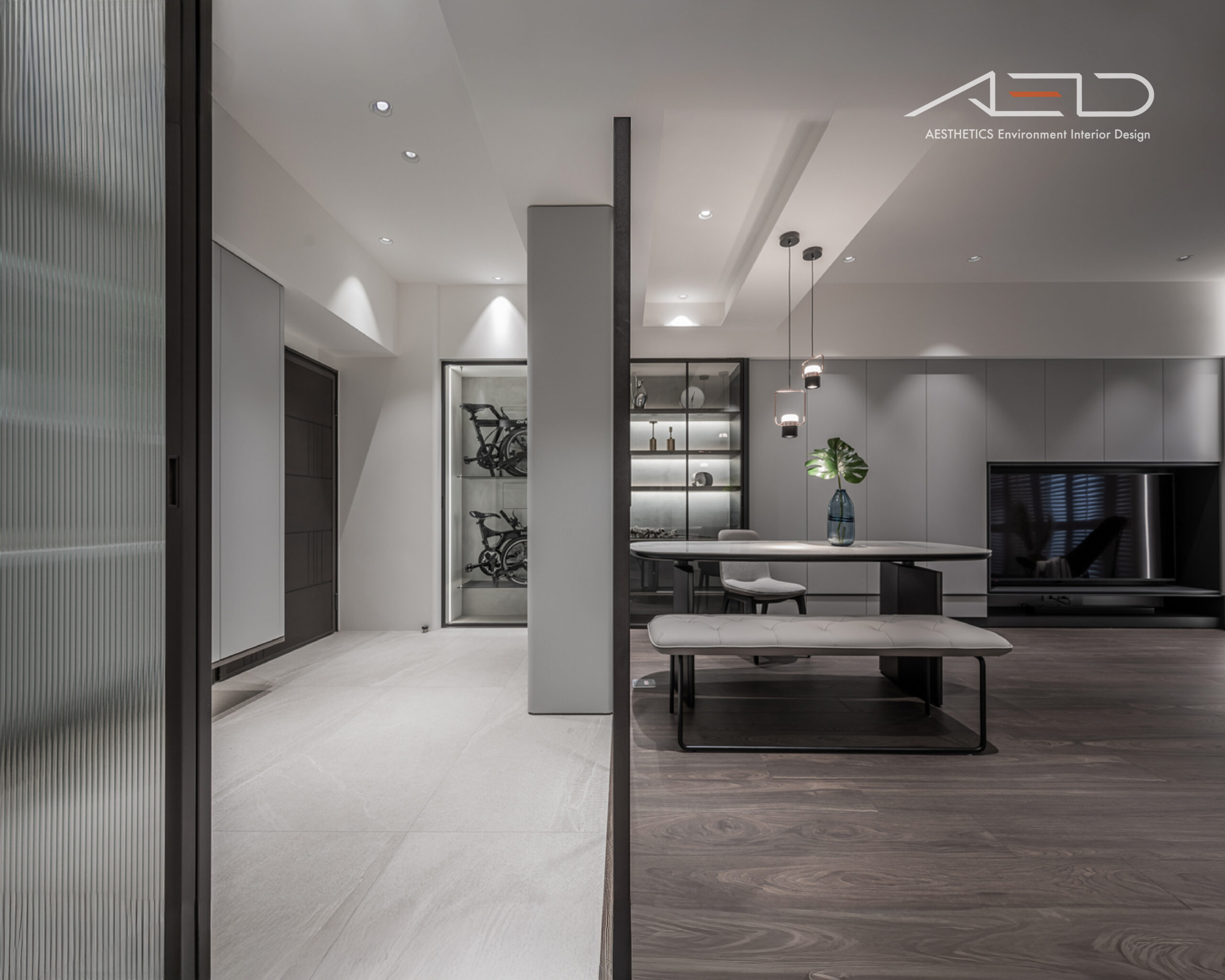 大方優雅含蓄,做工考究,玄關客廳牆面連成一線,搭配淺色白色窗框,打破單調界線,讓空間更顯質感鮮明。