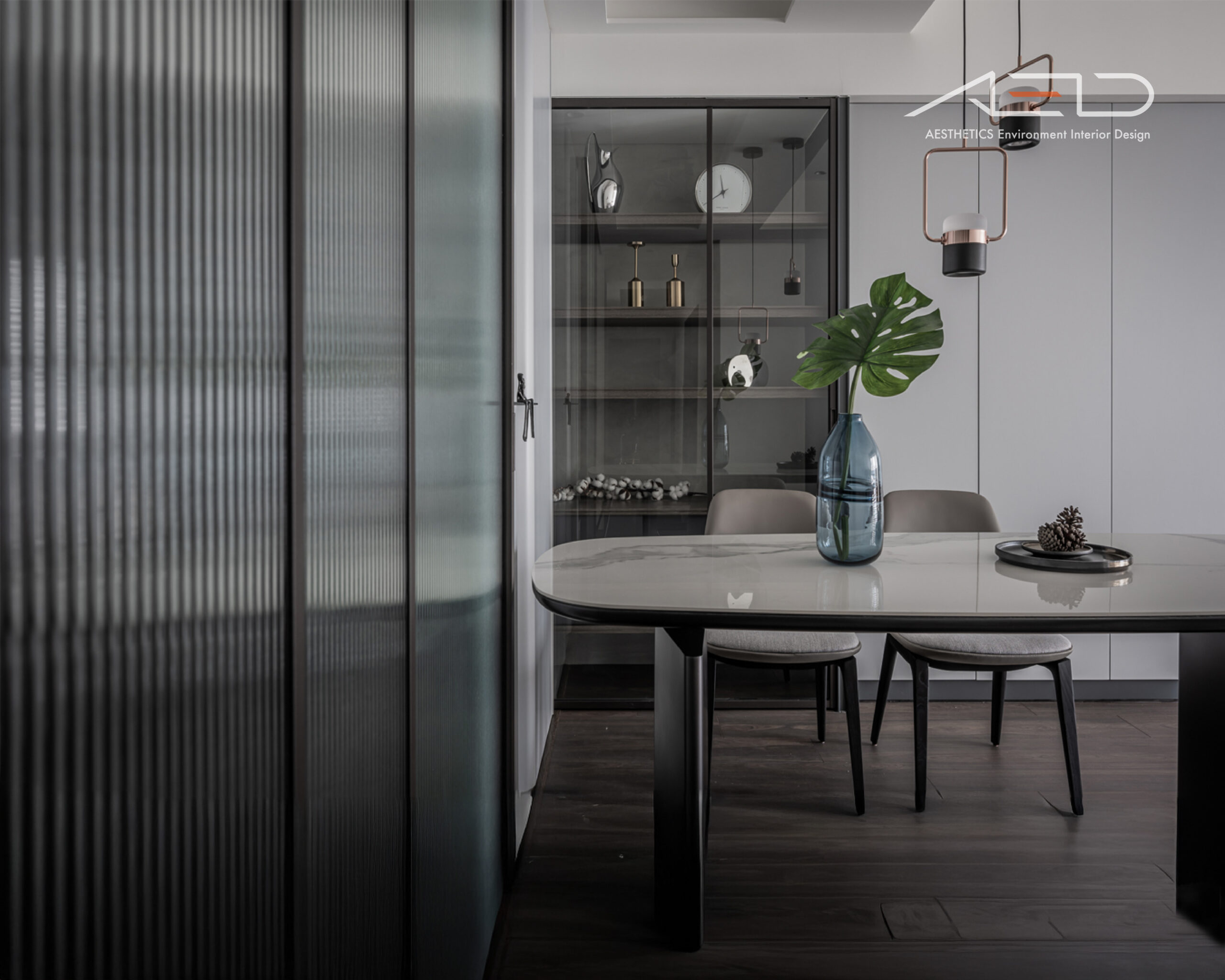 Graceful and understated, with meticulous craftsmanship, the entryway and living room walls flow seamlessly as one. Paired with light-toned white window frames, the design breaks visual monotony and enhances the clarity and refinement of the space.
