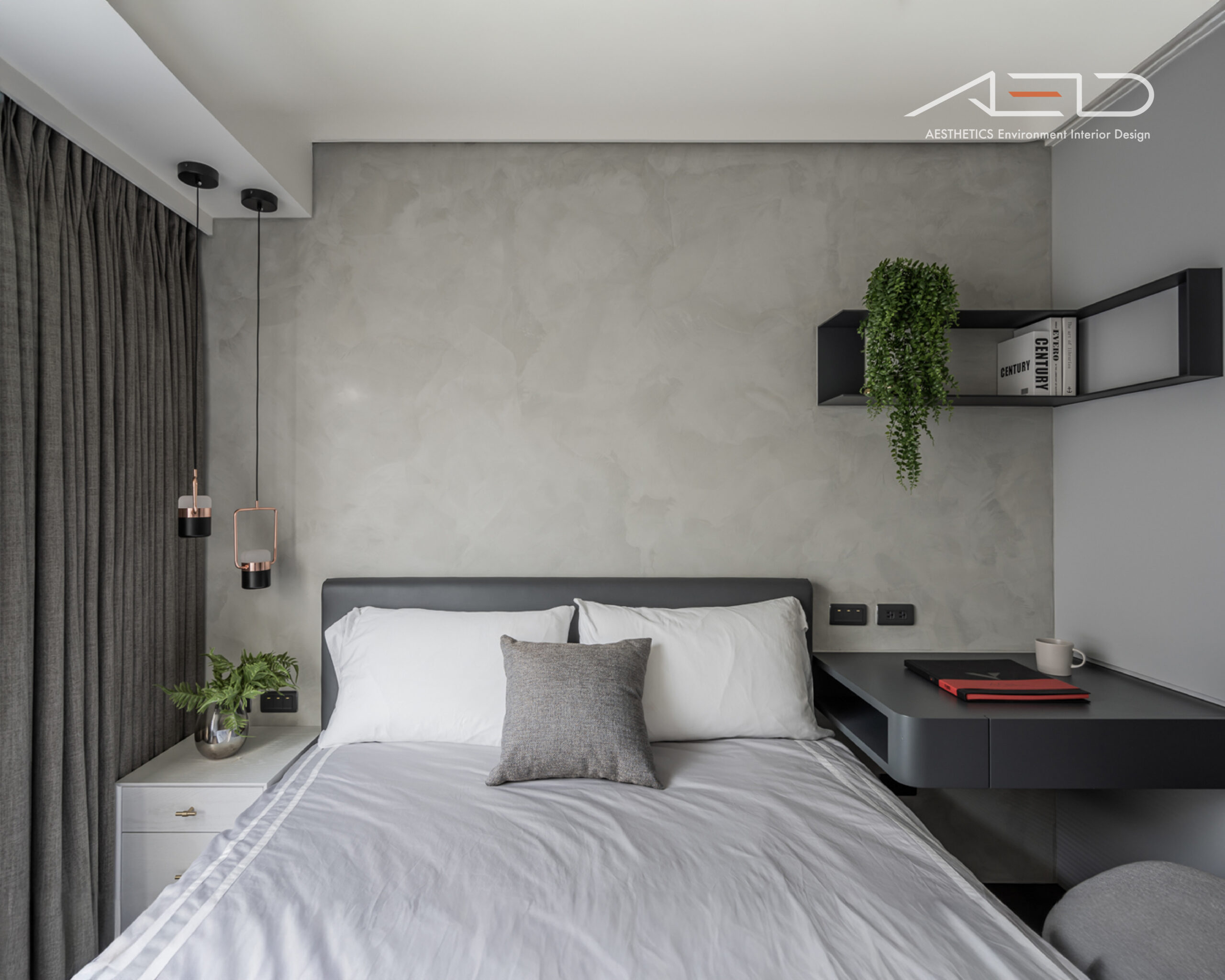 整體設計簡單優雅,搭配極簡的灰色牆面,溫潤感營造一個充滿期待的入住空間。